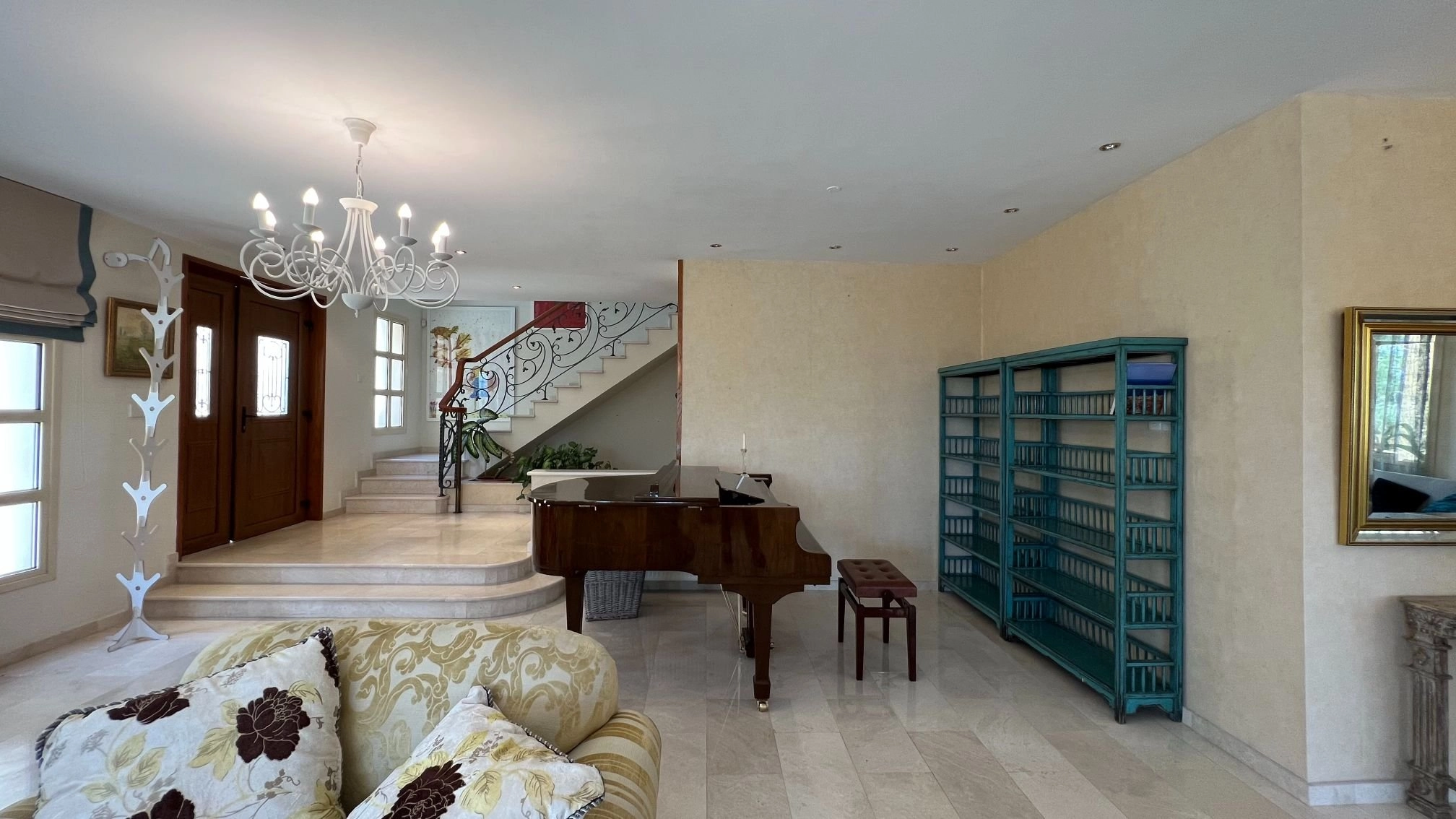 The 5-bedroom villa with spectacular views of the mountains, sea, and the city is located in the most prestigious area of Limassol, on one of the hills of Agios Tychonas. The covered area of the house is 495 sq.m, covered verandas 90sq.m, uncovered verandas 40sq.m, Land 1293sq.m. The pool size is 10 m to 4 m. The position of this villa is in harmony with its surroundings and has a large, carefully selected, gorgeous private garden with an irrigation system, patios, kid’s playground. The Villa has 4 floors – basement, ground floor, first floor, and attic. 5 bedrooms, four of them – en-suite, separate main kitchen, guest kitchen on the basement. The basement includes a large room with a bar, equipped with a home theatre system, billiards table, one bedroom with a bathroom and toilet, a laundry room, a small kitchen, and a sauna with a shower. There are two exits from the basement to the street. The basement can be used as a separate dwelling. The ground floor includes a living room with a working fireplace, an Italian fully equipped kitchen made of natural wood, equipment company Miele, a guest WC, and flooring – beige marble. Second floor: four bedrooms, three of which are equipped with a bathroom. There is also a storage room. Flooring – parquet. The third floor – the space under the roof, the size is 60 sq.m, currently used as an office, easily can be converted to an extra bedroom. Floors – laminate. All rooms are equipped with air conditioning cold/heat. All windows have electric shutters. All rooms are scattered over a lovely hillside, offering spectacular sea, mountain, and city views. The house is equipped with diesel central heating. The villa has a high-speed fiber internet connection. Also, there are 2 covered and 2 uncovered parking spaces.
