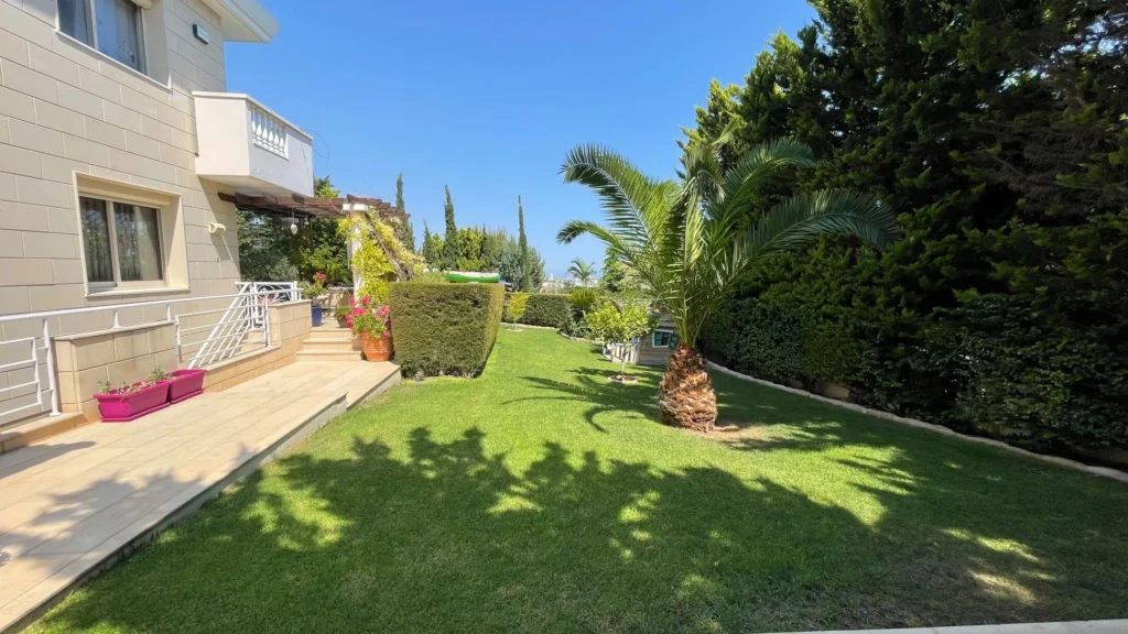 The 5-bedroom villa with spectacular views of the mountains, sea, and the city is located in the most prestigious area of Limassol, on one of the hills of Agios Tychonas. The covered area of the house is 495 sq.m, covered verandas 90sq.m, uncovered verandas 40sq.m, Land 1293sq.m. The pool size is 10 m to 4 m. The position of this villa is in harmony with its surroundings and has a large, carefully selected, gorgeous private garden with an irrigation system, patios, kid’s playground. The Villa has 4 floors – basement, ground floor, first floor, and attic. 5 bedrooms, four of them – en-suite, separate main kitchen, guest kitchen on the basement. The basement includes a large room with a bar, equipped with a home theatre system, billiards table, one bedroom with a bathroom and toilet, a laundry room, a small kitchen, and a sauna with a shower. There are two exits from the basement to the street. The basement can be used as a separate dwelling. The ground floor includes a living room with a working fireplace, an Italian fully equipped kitchen made of natural wood, equipment company Miele, a guest WC, and flooring – beige marble. Second floor: four bedrooms, three of which are equipped with a bathroom. There is also a storage room. Flooring – parquet. The third floor – the space under the roof, the size is 60 sq.m, currently used as an office, easily can be converted to an extra bedroom. Floors – laminate. All rooms are equipped with air conditioning cold/heat. All windows have electric shutters. All rooms are scattered over a lovely hillside, offering spectacular sea, mountain, and city views. The house is equipped with diesel central heating. The villa has a high-speed fiber internet connection. Also, there are 2 covered and 2 uncovered parking spaces.
