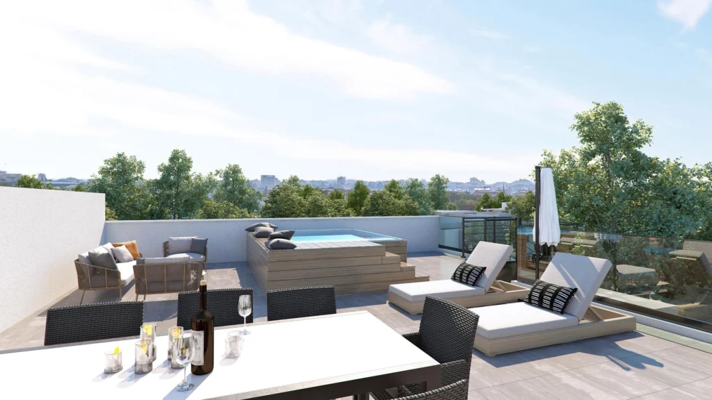 The elegant three-storey building comprises luxurious 1-2-bedroom apartments and 3-bedroom penthouses, each offering panoramic views of the beautiful surroundings. The expansive rooftop terraces provide an ideal space for family relaxation or lively gatherings with friends, with the exclusive option to install a jacuzzi for added luxury. Each unit is designed with meticulous attention to functionality and comfort, boasting high-quality construction and premium materials.