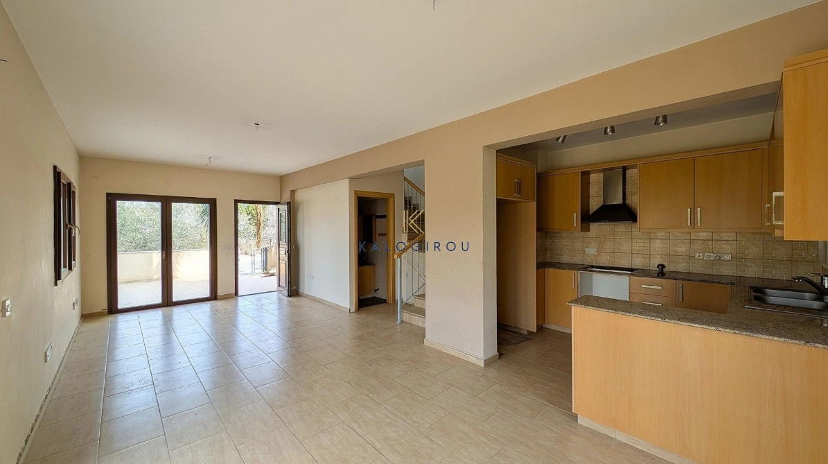 Semi Detach House for Sale in Kiti area, Larnaca. The House is Double Storey, has internal covered area of 98 sq.m, the ground floor is comprised of a living/dining room, an open plan kitchen and a guest toilet. On the first floor there are two bedrooms, and a bathroom with toilet. The property has also private yard of 55 sq.m and covered and uncovered verandas.