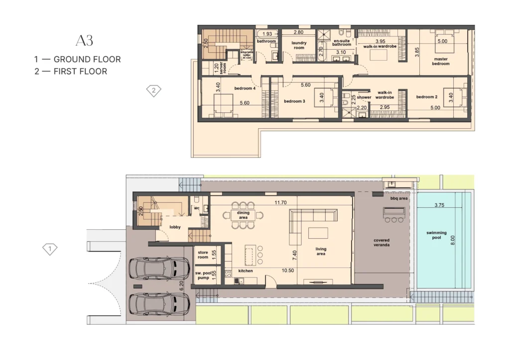 Located just 7 minutes’ drive from the sea and 15 minutes from Limassol’s business center, this villa combines luxury, convenience, and a serene lifestyle in a gated community renowned for elegance and privacy.