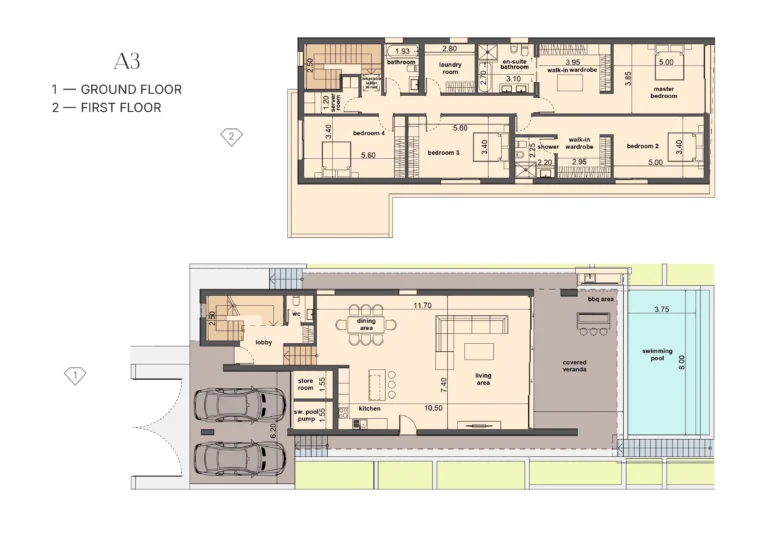 Located just 7 minutes’ drive from the sea and 15 minutes from Limassol’s business center, this villa combines luxury, convenience, and a serene lifestyle in a gated community renowned for elegance and privacy.