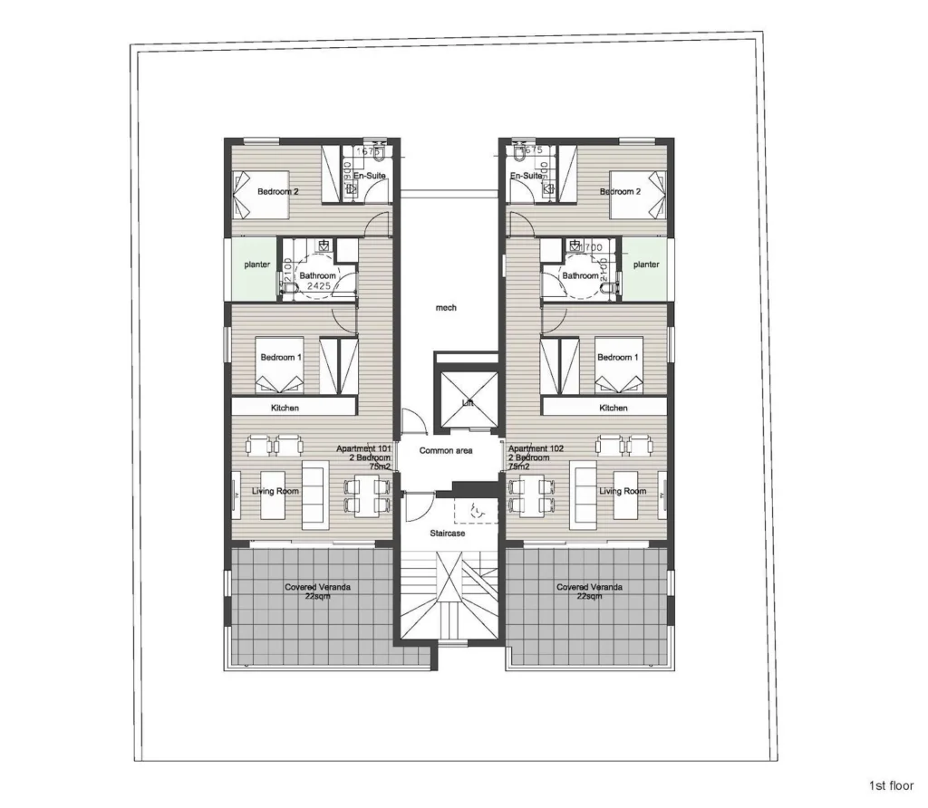 • Internal Area: 75 m²