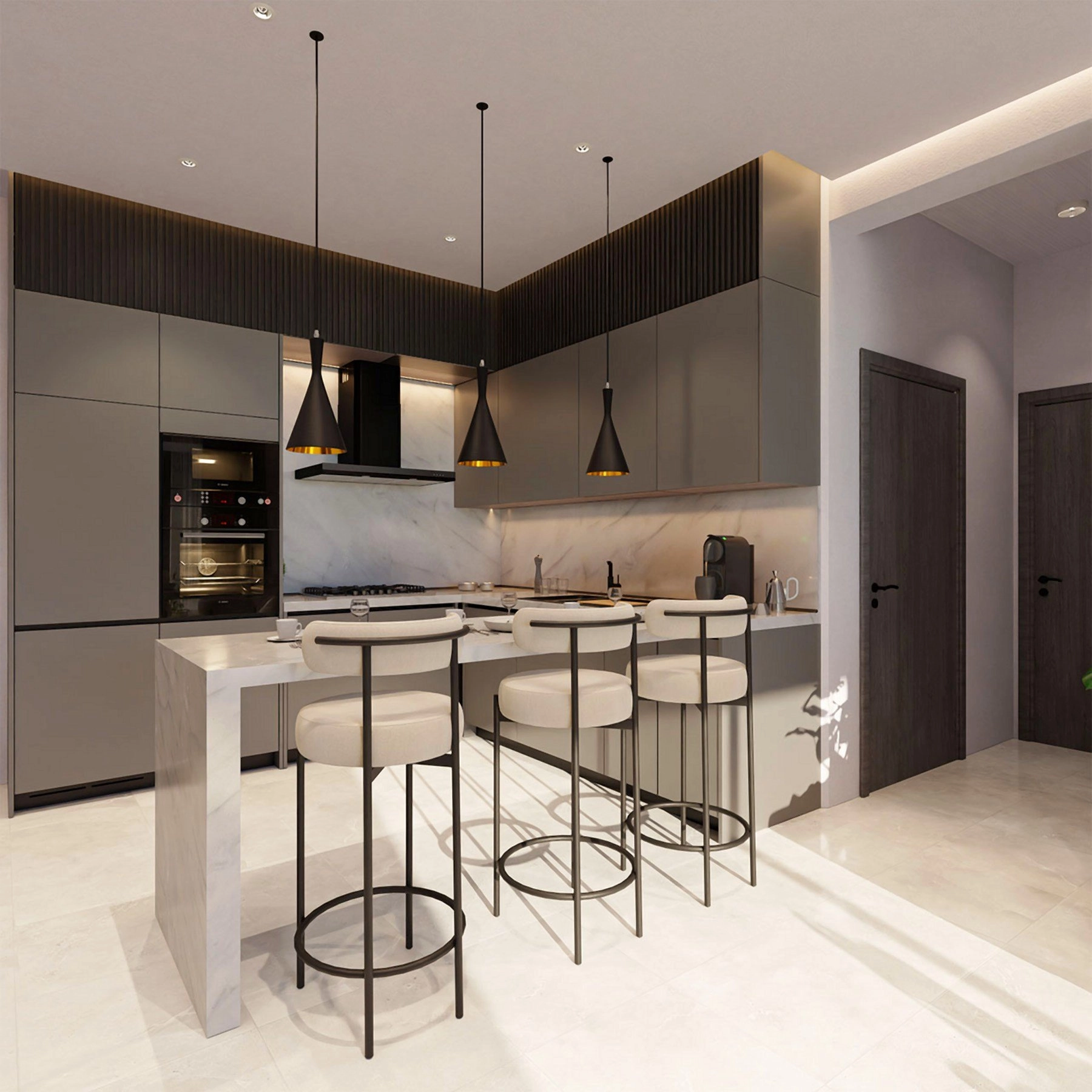 At street level, spacious commercial units with double-height ceilings offer an impressive setting for offices, studios or boutique businesses — a seamless blend of residential comfort and professional opportunity in one address.