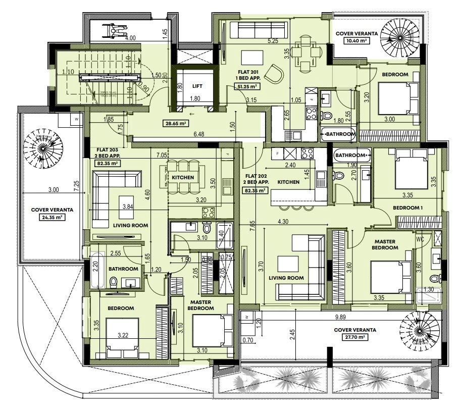 Inside, the residences form a curated collection of one- and two-bedroom apartments, each designed with open layouts, refined finishes and abundant natural light. Private verandas extend the interior atmosphere outdoors, while the option to personalise materials through selected suppliers allows every home to reflect its owner’s taste.