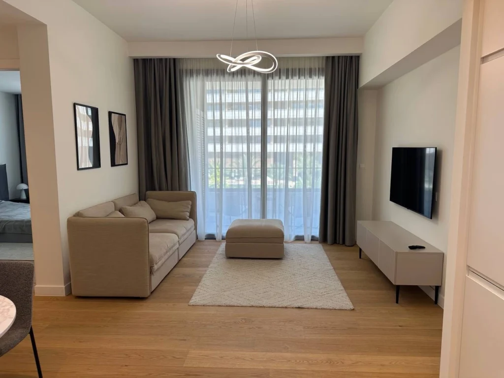 One-bedroom apartment of 81 m2 for sale in Germasogeia, Limassol. The apartments include one bedroom, one bathroom, a kitchen, a living room and a covered veranda of 14.6 m2, as well as a storage room. The apartment is located on the 2nd floor. The property is equipped with a covered parking. The complex is a luxury residence designed according to a unique architectural concept in the form of a silhouette of a modern yacht. The design combines the harmony of natural nature and man-made space, and wide balustrades around the perimeter of the floors emphasize the expressive horizontal architecture. Residents enjoy the privacy of a gated community with well-developed infrastructure, including an outdoor swimming pool, gym, sauna, landscaped gardens, and covered parking.The location of the complex is distinguished by the silence and prestige of the Limassol tourist area, just 500 meters from the sandy beaches of Dasoudi and all the necessary infrastructure of the area. Restaurants, banks, pharmacies, grocery stores and landscaped park areas for walking are located in the immediate vicinity.The complex has a number of advantages: an author’s architectural design from one of the leading London bureaus, spacious balconies with private greenery, high ceilings of 3.15 m, penthouses with private pools, as well as high-quality finishing materials, including parquet, marble in bathrooms, 2.4 m high doors, reliable entrance safe doors, thermo-aluminum windows frames and built-in furniture from European manufacturers. The apartments have underfloor heating, VRV air conditioning, video intercom and premium-level plumbing.The interiors are designed in the original style of Prime Property Group and emphasize the status and quality of living in one of the most sought-after areas of Limassol.