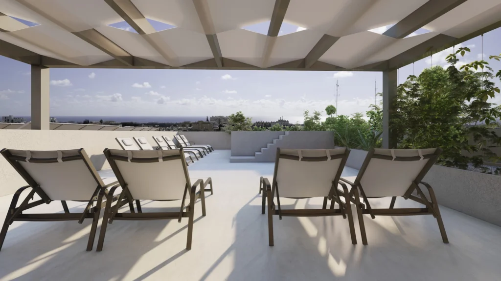 A1: The apartment is situated in the heart of Paphos city centre, close to shops, restaurants, schools, and essential amenities.