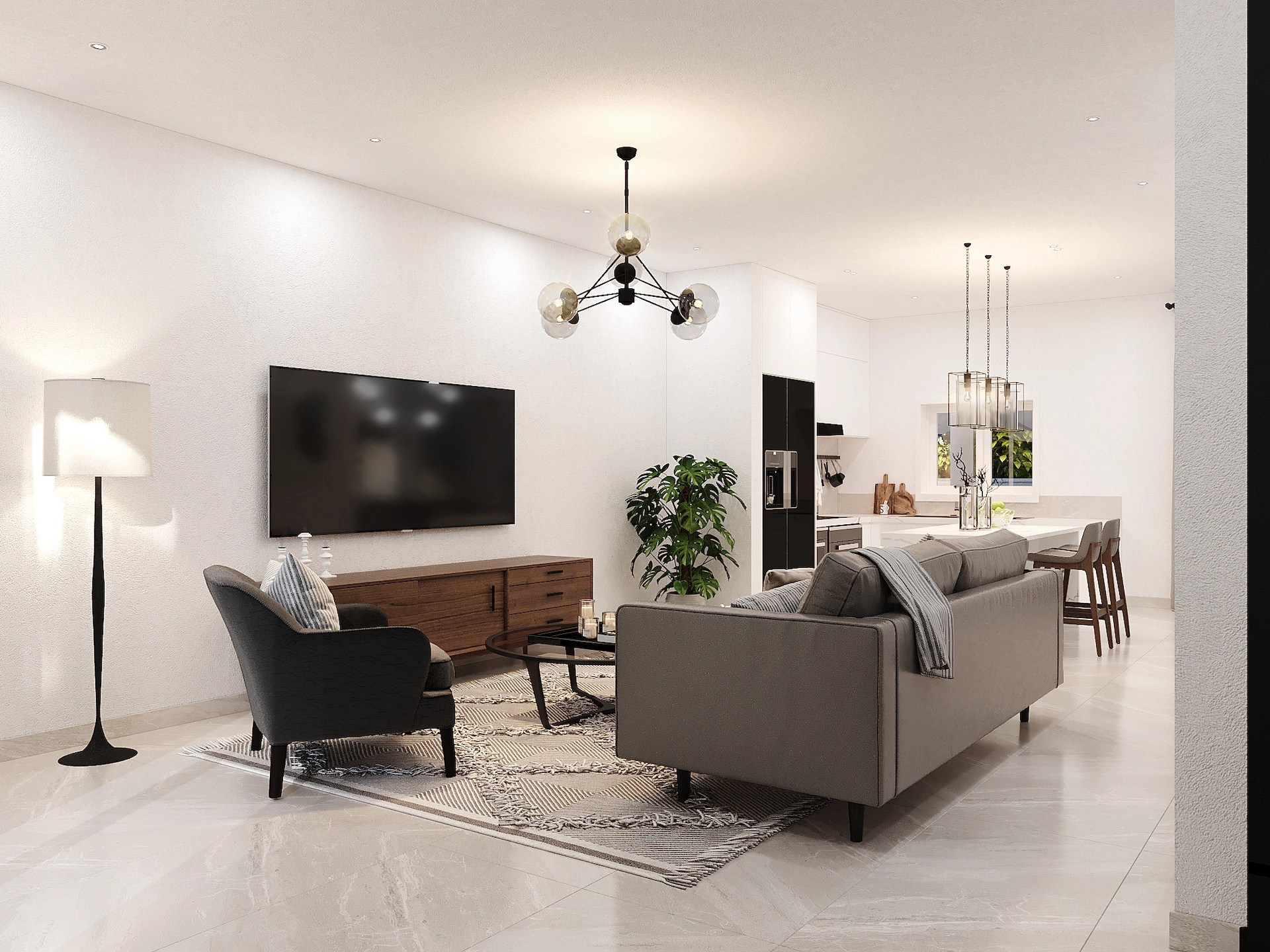 Living Areas: Bright open-plan kitchen, living, and dining space