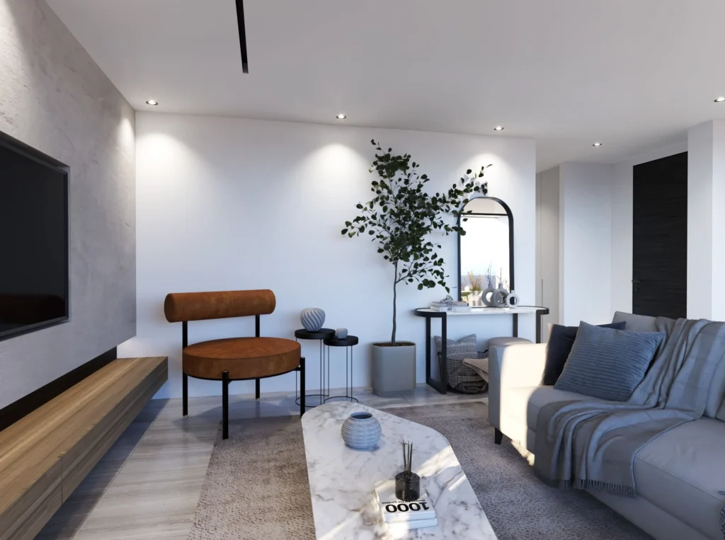This elegant project comprises of six spacious apartments with large verandas, covered parking and private storage rooms. The small building is located in a quiet residential neighborhood within walking distance to the central shopping and dining route in Latsia. The building features a lobby, pin access gates, a modern elevator and a photovoltaic system for communal electricity. CCTV and electric car port is given as a provision. The top floor apartments include a fire place in the sitting area. The apartments are finished to the highest standards with upmarket ceramic and/or parquet floors, technogranite counters. The Project has EPC certificate with “A” Energy Efficiency Rating.