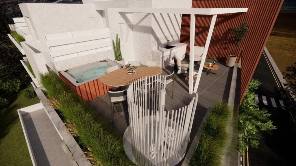 1+1 bedroom penthouse with a roof terrace for sale in a new boutique complex in Livadia, Larnaca, a unique high-end project consisting of only six exclusive residences. The complex features a thoughtful modern design, an intelligent home management system and premium finishes that create an atmosphere of comfort and privacy. Each apartment is designed to provide maximum comfort and functionality: spacious, bright rooms, high-quality modern kitchens, stylish bathrooms and a harmonious layout. A special advantage is the Jacuzzi on each balcony, which turns a private outdoor space into a relaxation area and allows you to enjoy your vacation. The complex is located in a quiet and promising area of Livadia, just a few minutes from the sea, shops, cafes and the main city routes. This is an ideal option for those who are looking for modern, stylish and exclusive accommodation in one of the most attractive areas of Larnaca.