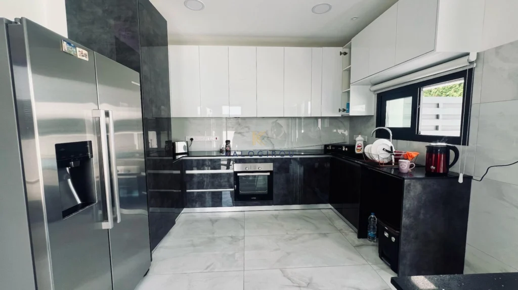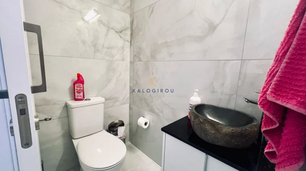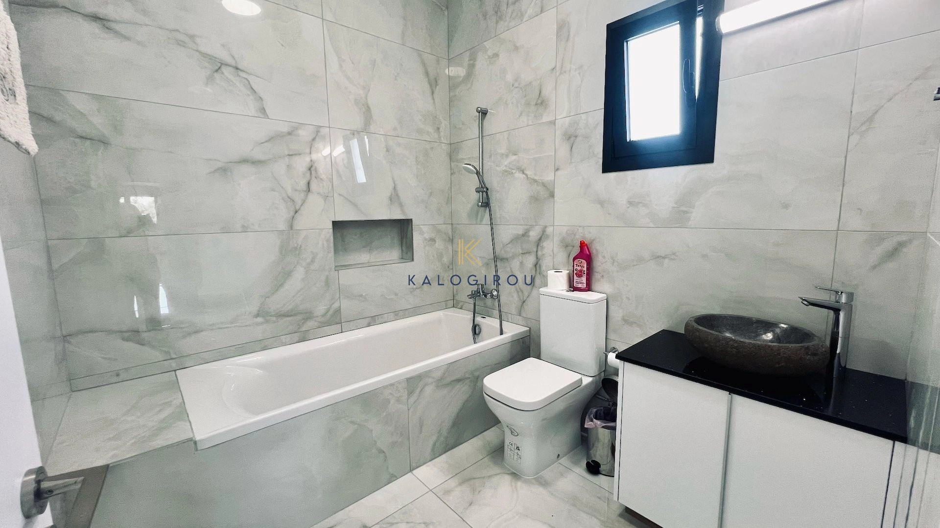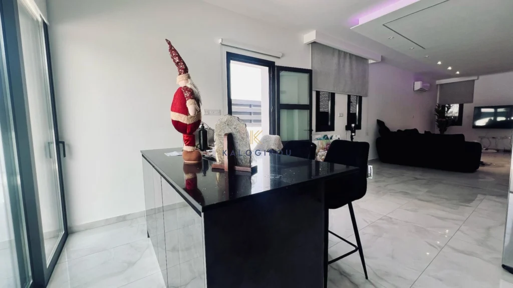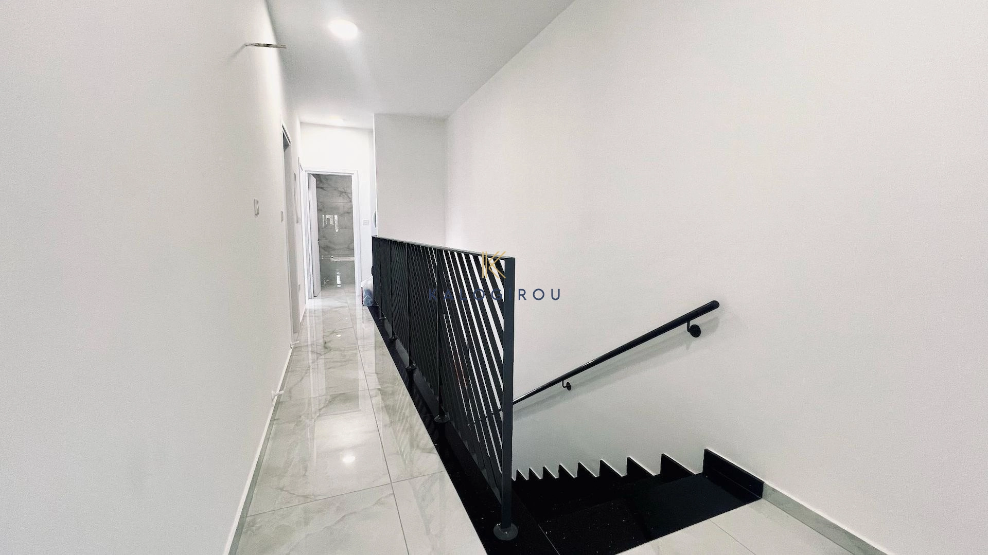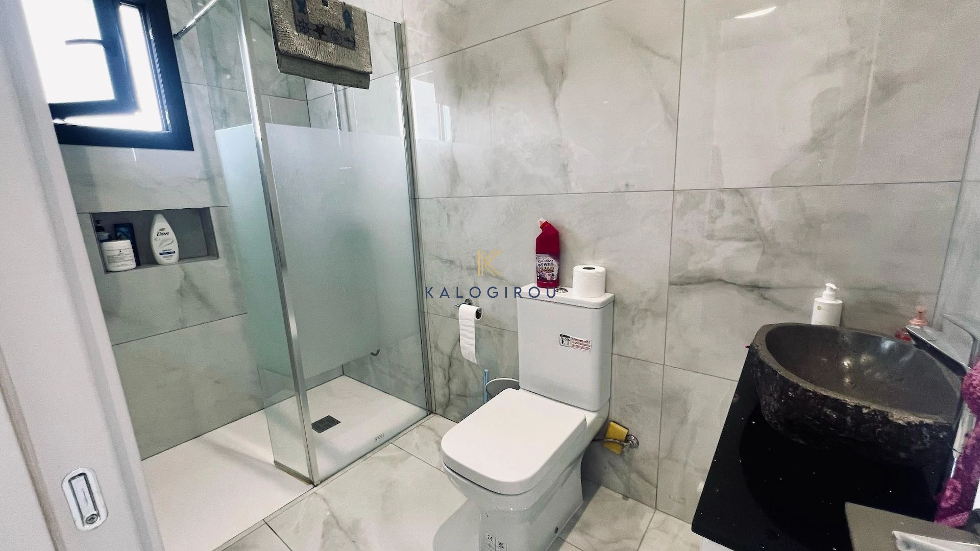 Villa for sale in Krasas area, Larnaca. It consists of a large lounge with dining area in an open plan space, guest wc, living room, kitchen with kitchen island, covered veranda. On the second floor, a family bathroom, 3 bedrooms, master is with en suite shower & wc. Also the property has a garage. Externally, the house offers a spacious garden space and a stunning swimming pool. It is worth mentioning that the house has an approximate internal covered area of 160sqm and its land area of 317 sqm. Year of construction is 2025.