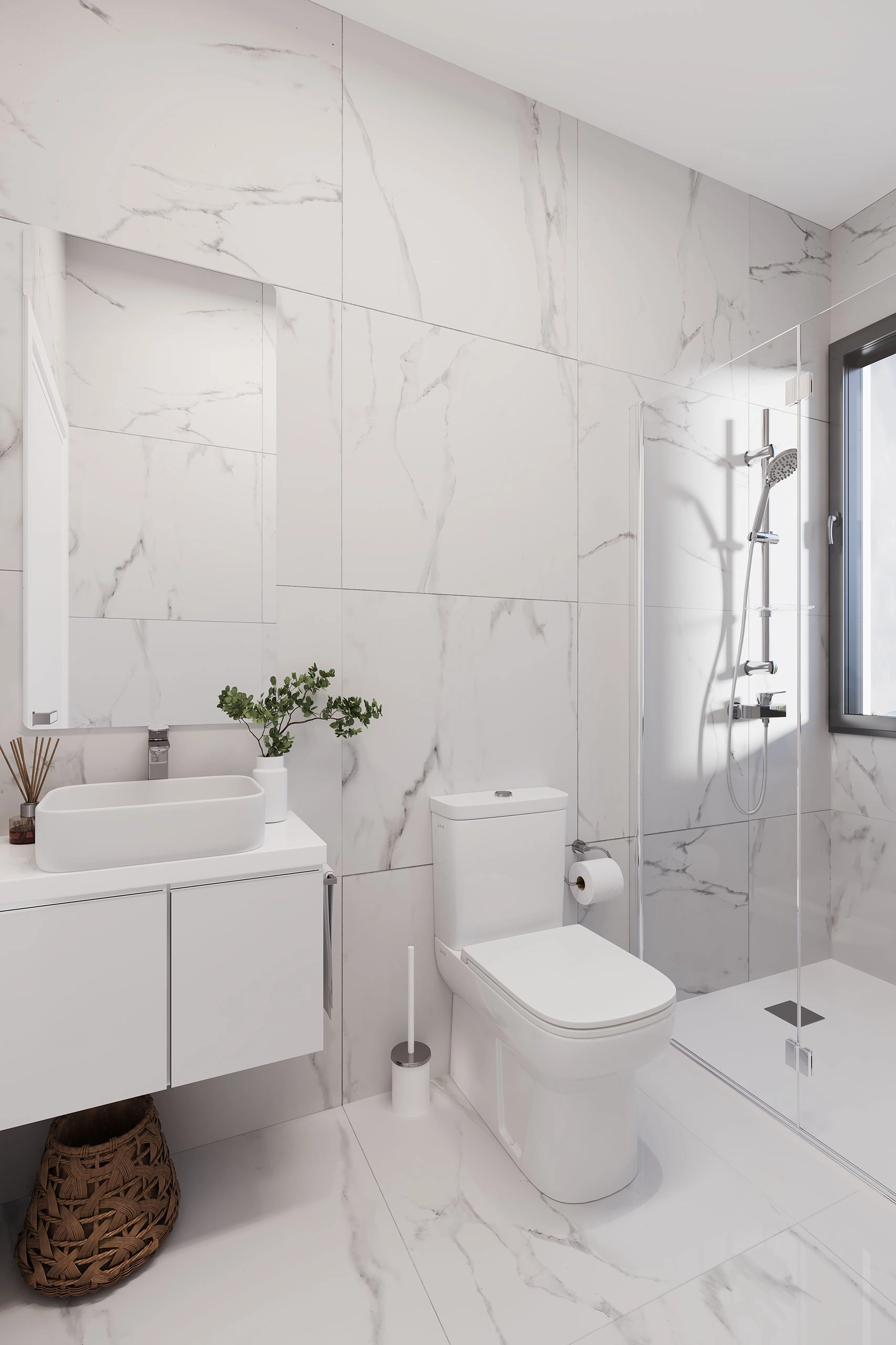 ✔ Flat shower with glass door