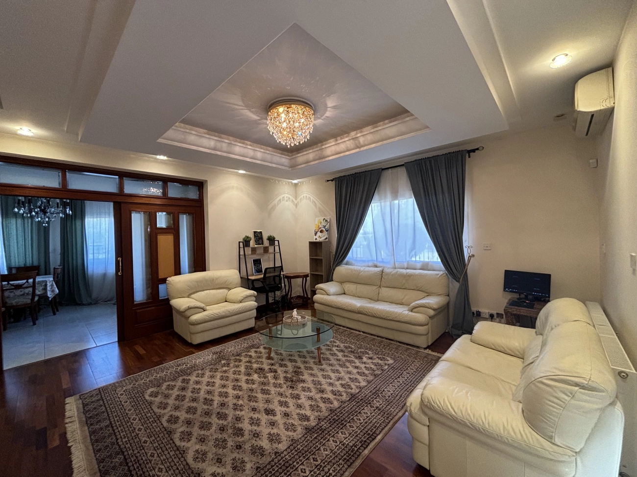 Sale of a villa in Germasogeia tourist area, Limassol. The villa is situated just minutes walking distance to the beach. It consists of 2 levels – first level consists of kitchen, dinig area, living area, guest toilet and 1 bedroom, second level consists of 4 bedrooms and 3 bathrooms. There are also underfloor heating, airconditioning in all rooms, parking space, storage room and big garden with swimming pool.