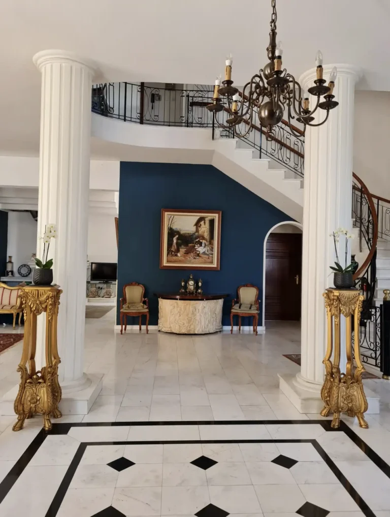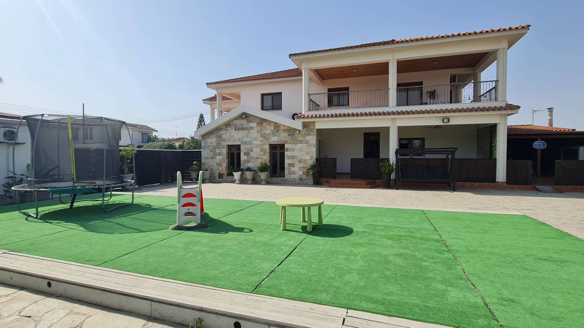 Luxury villa for sale in a promising area of Kiti, Larnaca. This is a real gem of real estate. With 6 spacious bedrooms, 5 luxurious bathrooms and a Jacuzzi, it offers comfort and privacy. The house has 3 hotel kitchens, one of which is located on the second floor and a huge living room creates an ideal space. Double-glazed windows and air conditioners provide comfort at any time of the year. The villa is fully furnished and equipped with all necessary appliances, which makes it ready to move. The water pressure system and photovoltaic panels guarantee reliable and efficient supply of water and energy. 2 spacious terraces and 2 verandas offer magnificent views and an ideal place to relax. There is a large swimming pool with a shower and a barbecue area. Additional amenities include a games room, an alarm system, a storage room and a garage for 2 cars. A well-kept garden gives the villa an atmosphere of paradise. On the territory there is a building of 7 rooms where you can organize a clinic, a beauty salon or an additional house for living. The entire infrastructure is located nearby, providing easy access to all necessary amenities and entertainment. The sea is a 7-minute drive away.