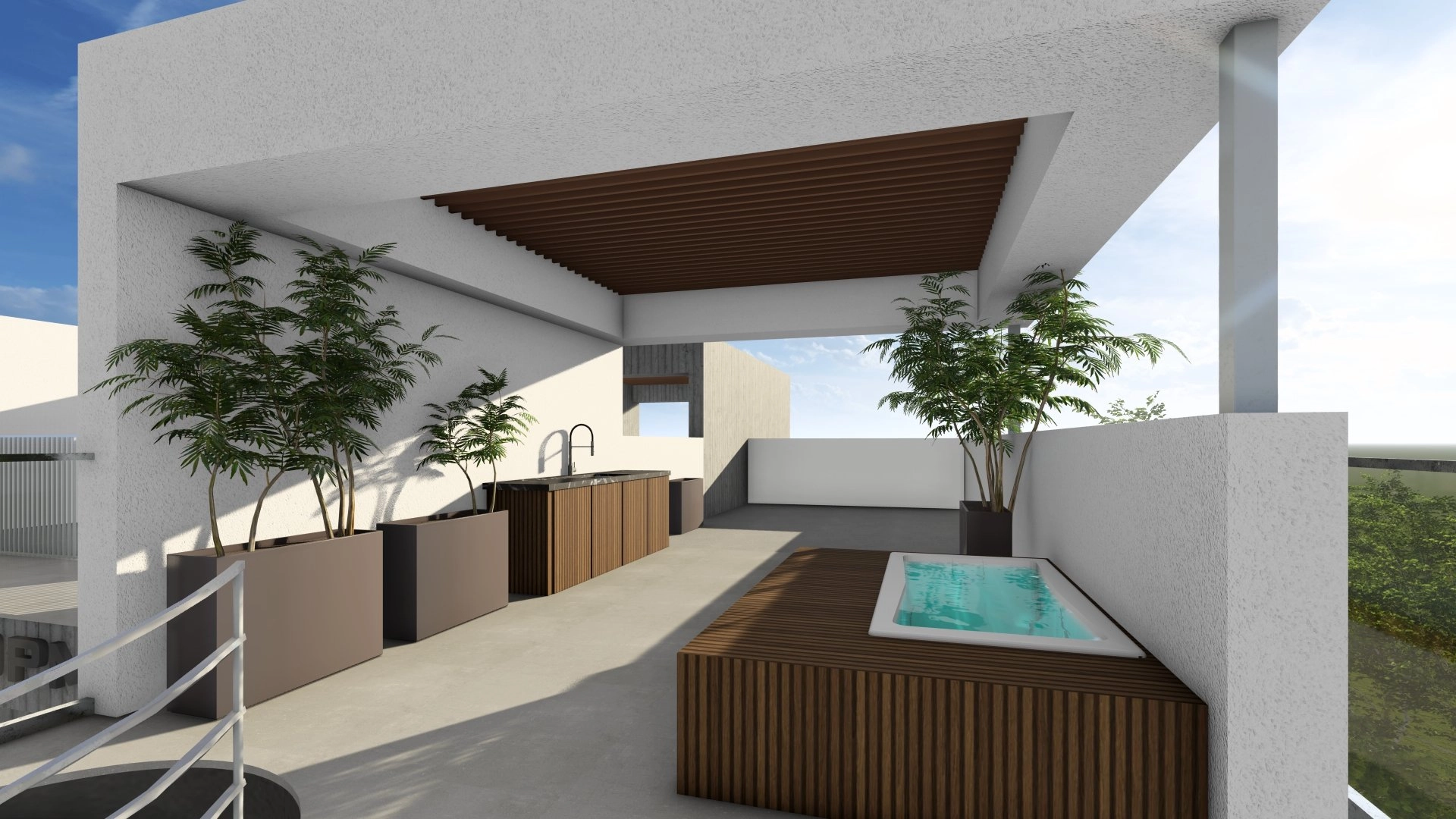 The maisonette features a well-proportioned open-plan living area, designed to maximise functionality and natural light. Two comfortable bedrooms and two modern bathrooms ensure practicality for everyday living, while a spacious covered veranda extends the living space outdoors. Set on a private plot, the residence also offers the option of a roof garden, allowing owners to personalise the home with an additional outdoor retreat.