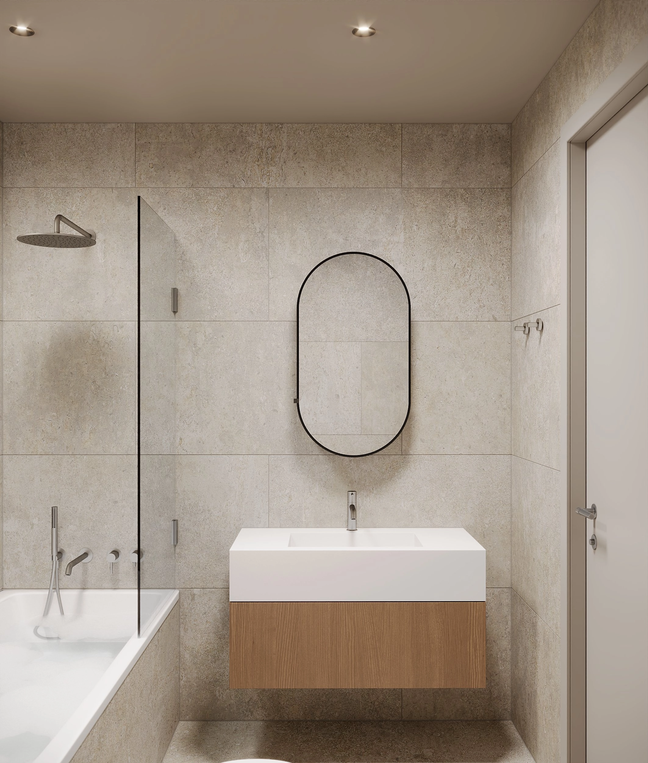 Apartments are designed with comfort and simplicity in mind. Open layouts, large verandas and natural light create an easy flow through the day. Ground-floor homes have private gardens where children can play,