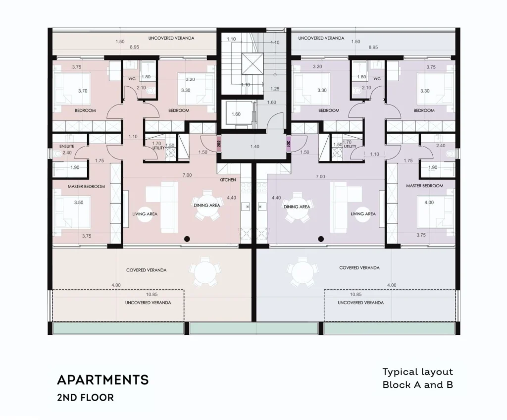 Apartments are designed with comfort and simplicity in mind. Open layouts, large verandas and natural light create an easy flow through the day. Ground-floor homes have private gardens where children can play,