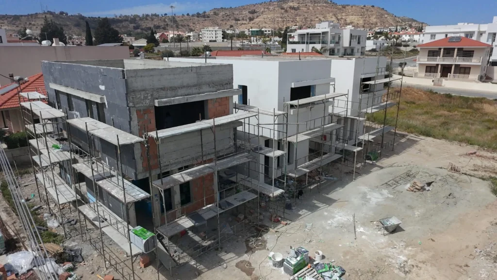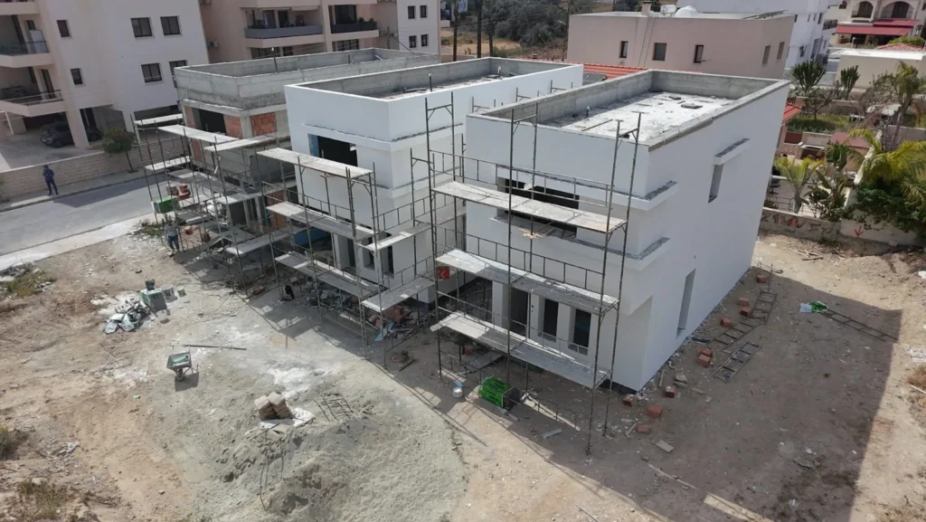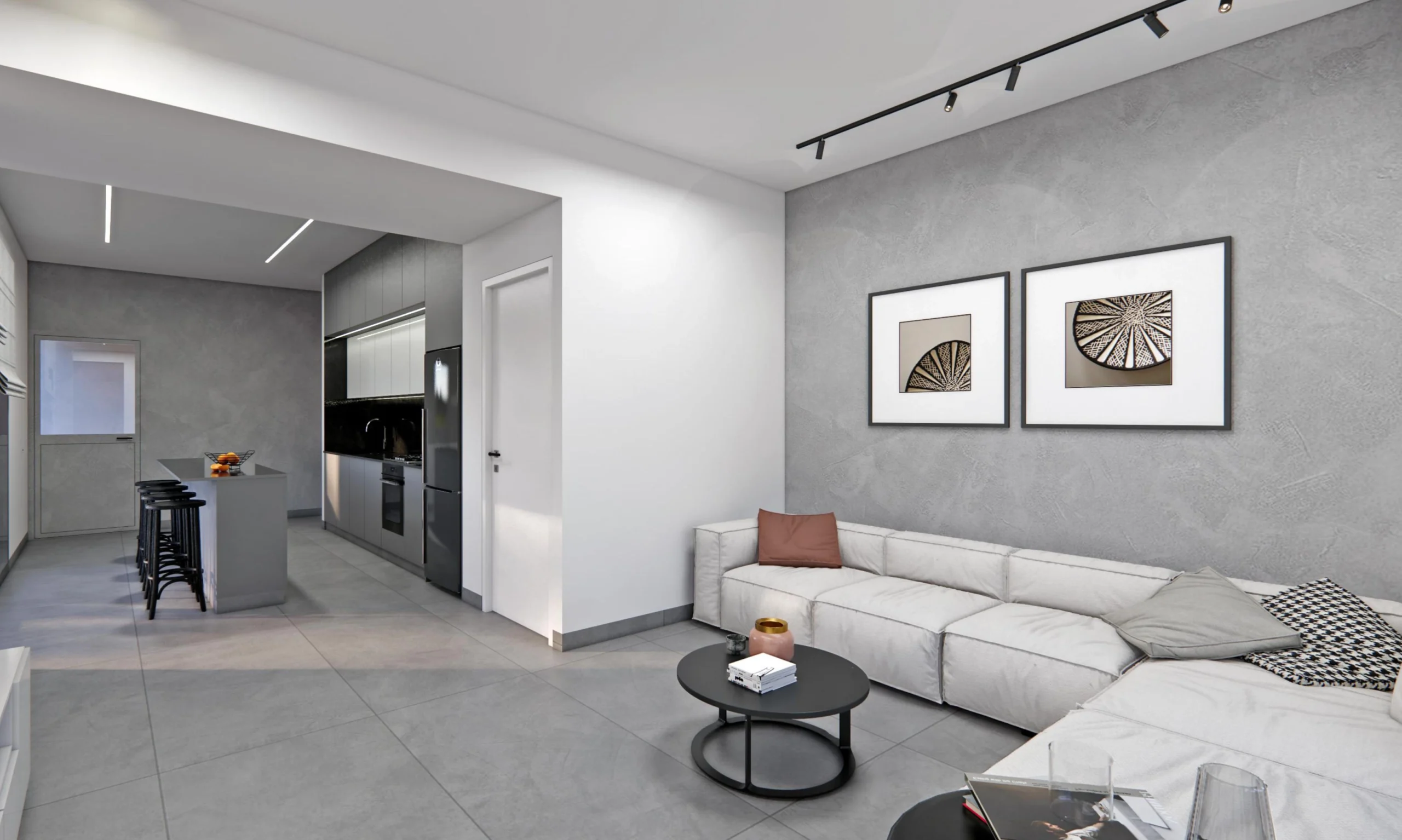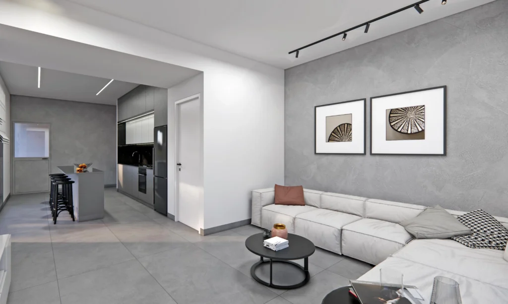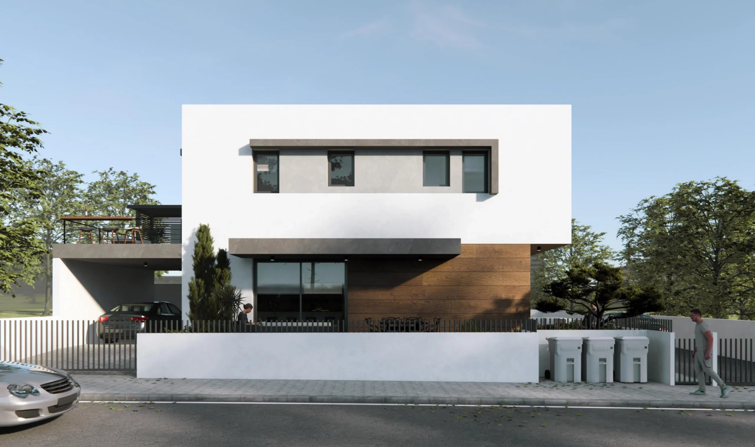 Modern townhouse with two spacious bedrooms for sale in Oroklini,Larnaca. The townhouse is equipped with a private garden, several terraces on each level and a roof terrace. In addition, it has an independent solar system for electricity and hot water. A private pool is available for an additional fee. There is also a covered parking and a place for an electric car charger. Just 11 minutes from Larnaca International Airport and the city center, and 6 minutes to the beach. The pool is not included in the price.