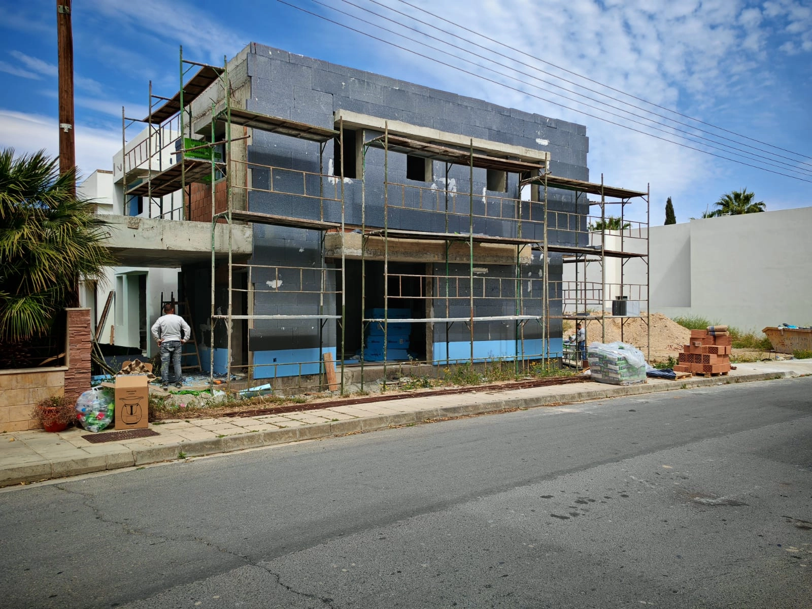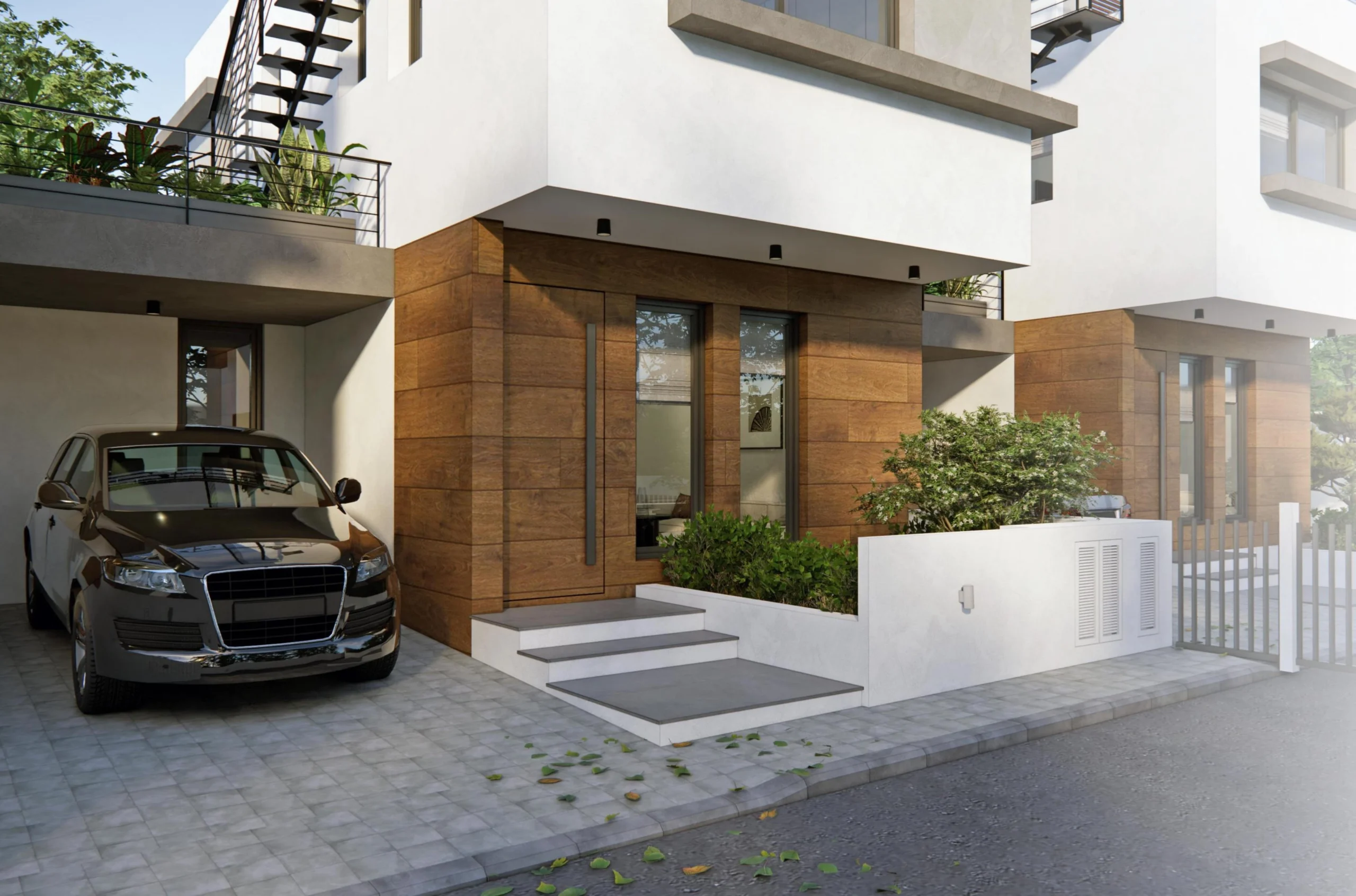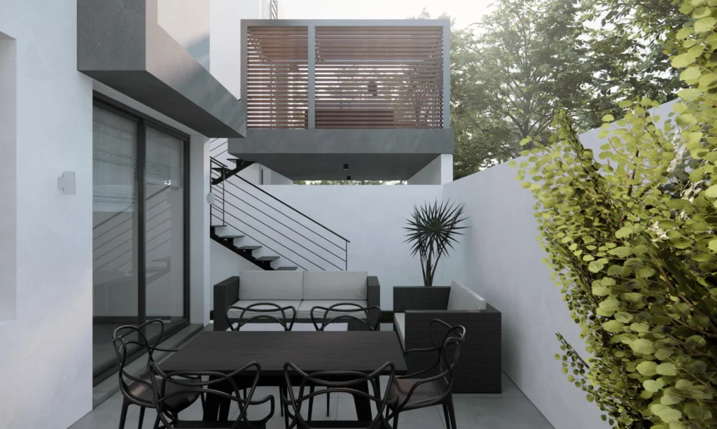 Modern townhouse with three spacious bedrooms for sale in Oroklini,Larnaca. The townhouse is equipped with a private garden, several terraces on each level and a roof terrace. In addition, it has an independent solar system for electricity and hot water. A private pool is available for an additional fee. 11 minutes from Larnaca International Airport and the city center of Larnaca, 6 minutes to the beach. The pool is not included in the price.