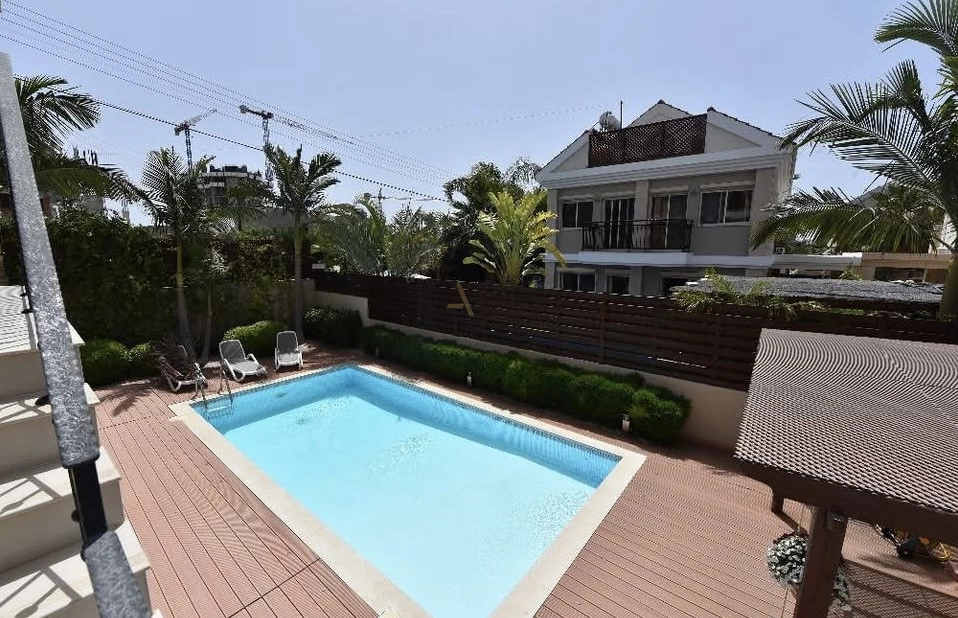 The outdoor areas are equally impressive, featuring a large swimming pool, outdoor shower, generous barbecue area, and a small garden with citrus trees, creating an ideal setting for relaxation and entertaining.