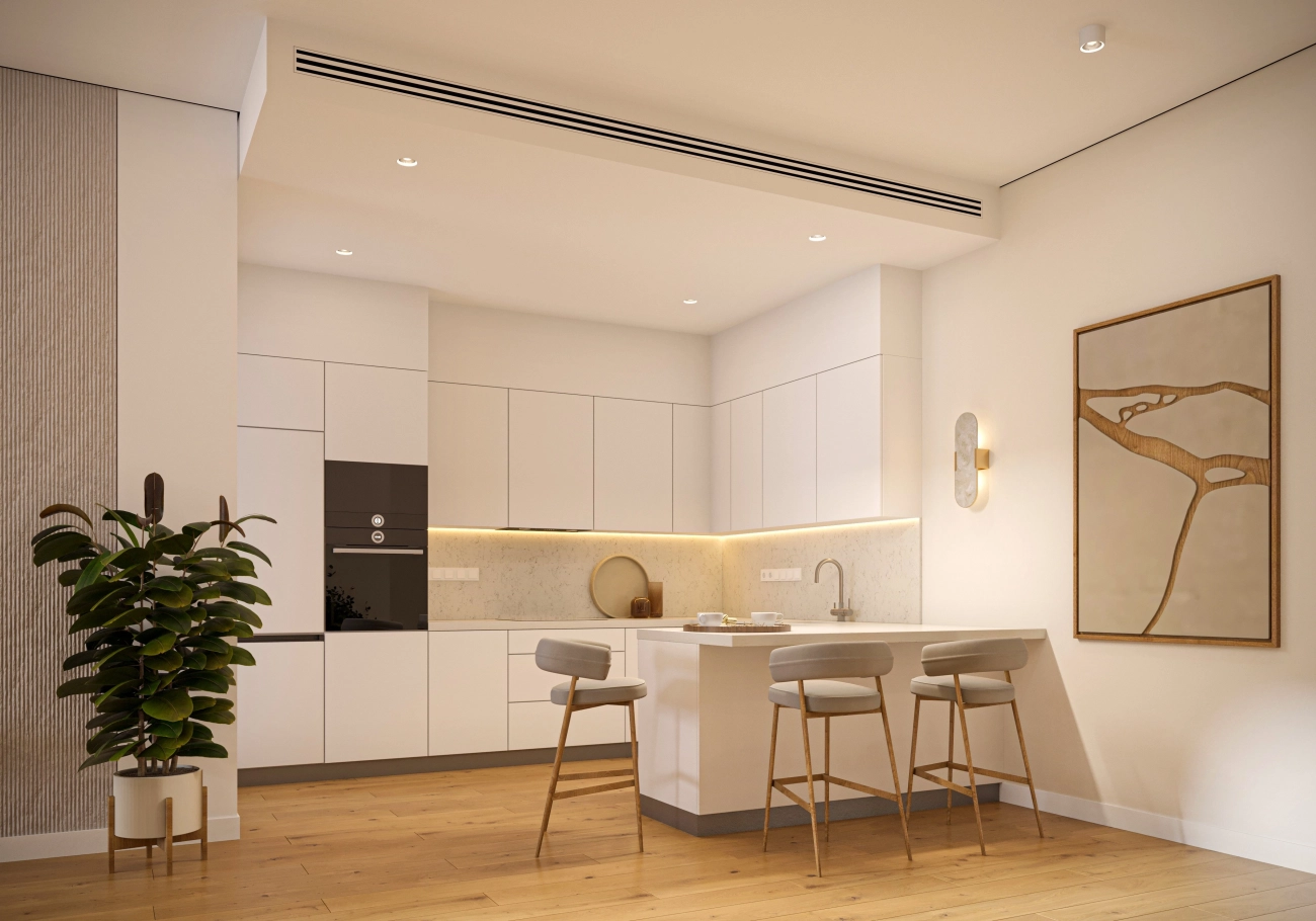 This project has gathered the best in the architectural solutions of apartment buildings on the island: eco-friendly materials, high level of comfort, spacious, bright layouts, interiors with elements of panoramic glazing with access to landscaped terraces. Design finishing solutions based on high-quality European materials.