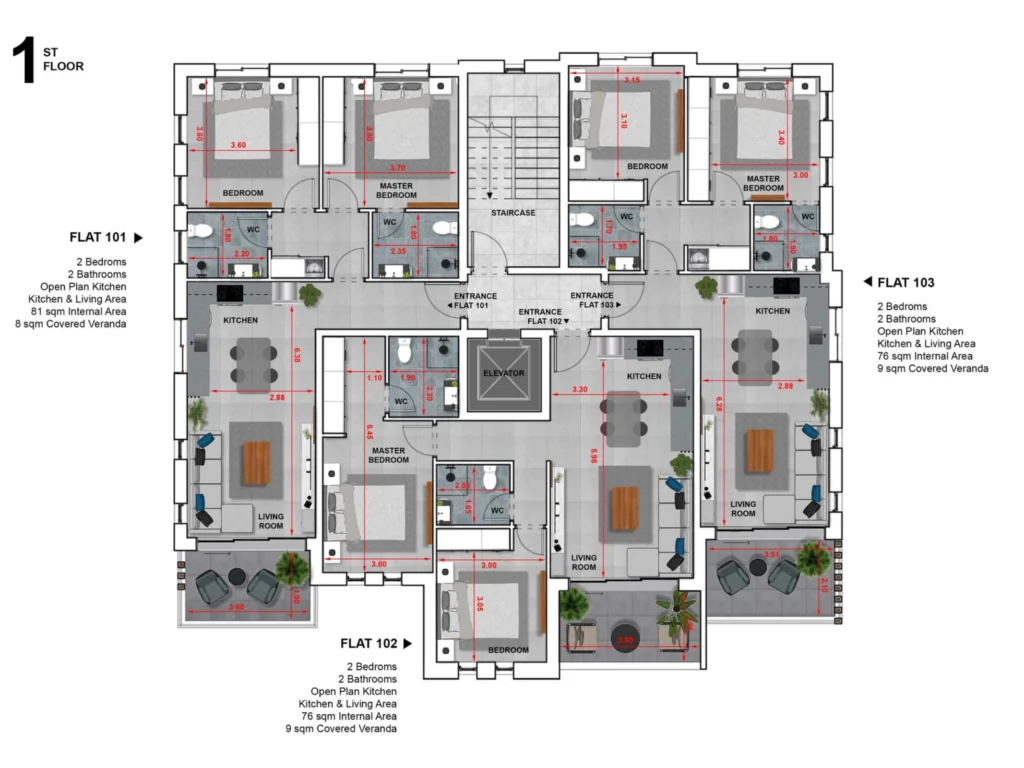 Apartment for sale in a project located in the lively area of Asomatos, Limassol. The high-end residential project offers privacy and comfort. There are only six apartments in the complex. The apartments on the second floor have rooftop garden terraces with spectacular views. Each apartment has a private covered parking and a special storage room. The project has energy efficiency category A.The area has easy access to many world-class amenities. Nearby are: City of Dreams Mediterranean, the largest casino resort in Europe; My Mall, the second largest shopping mall in Cyprus; Fasouri Watermania, the island’s largest water park; Limassol Greens resort and golf course; Ladies Mile Beach and Limassol Salt Lake.