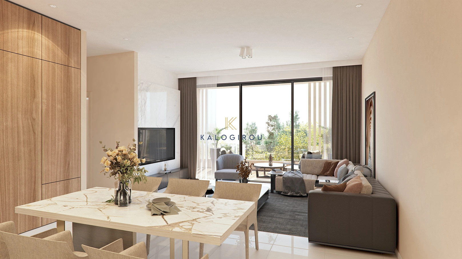 Apartment for sale in Livadia area, Larnaca. It is situated on the second floor with spacious areas. The apartment consists of an open plan kitchen, living, dining area, one bedroom, shower room and covered veranda. The apartment has allocated covered parking space and storage on the ground floor.