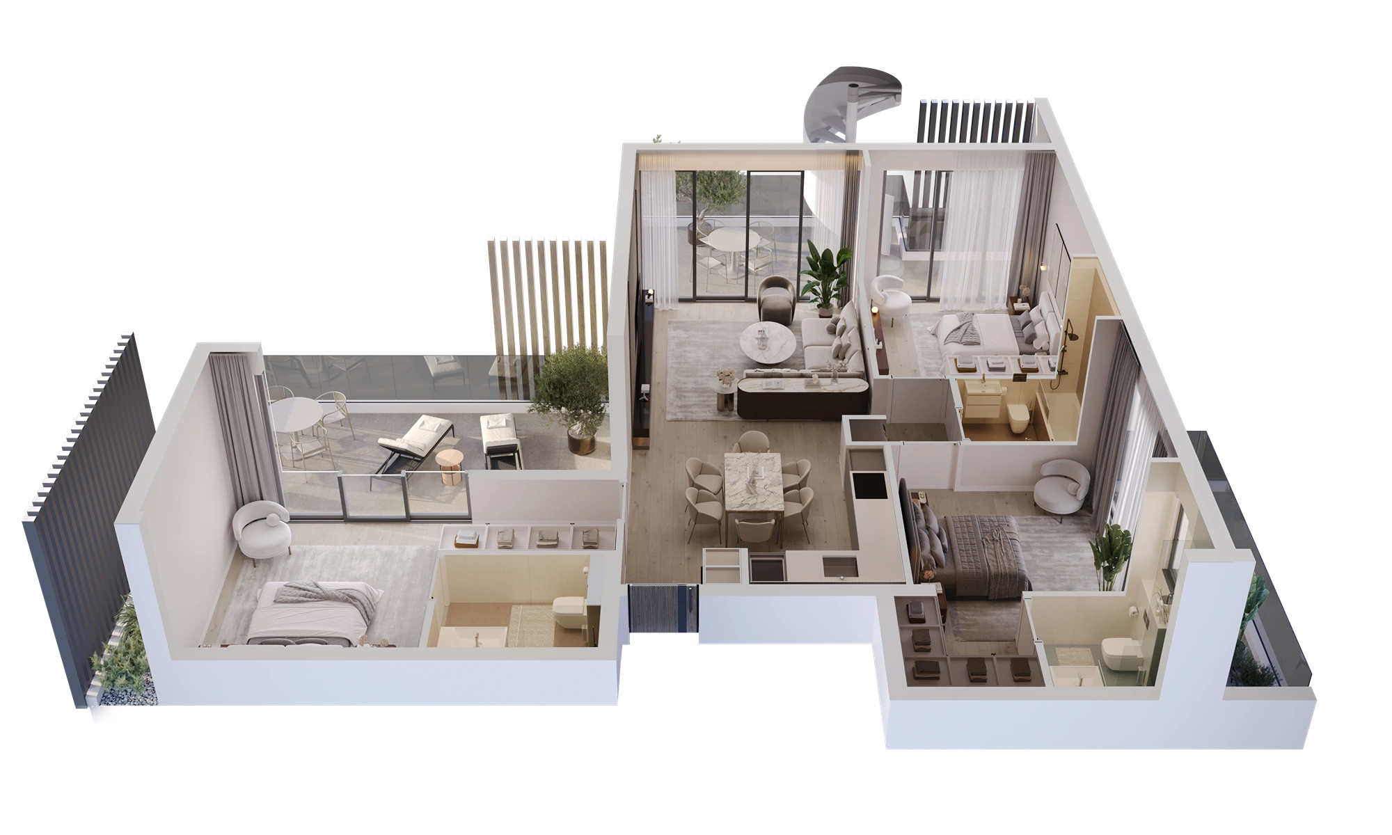 The development consists of only 8 residential units within a three-storey building, offering an exclusive and private living experience. It features a thoughtfully curated selection of residences, including cozy one-bedroom apartments, spacious two-bedroom layouts, and exclusive three-bedroom penthouses with private rooftop gardens. Each layout is carefully designed to suit different lifestyles — from first-time homeowners to families and investors — with open-plan living spaces, well-defined private areas, and seamless indoor–outdoor flow.