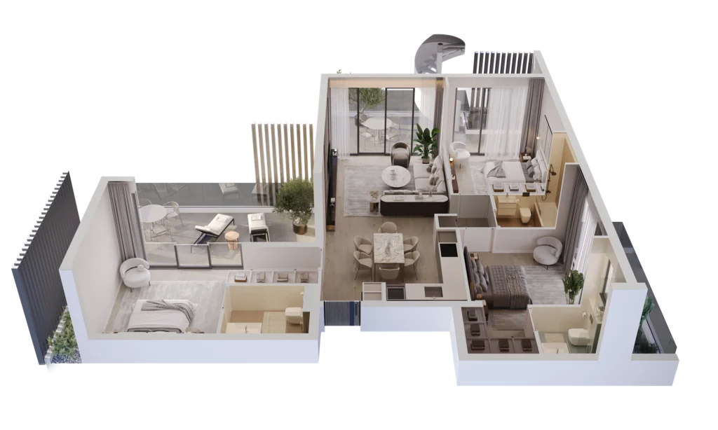 The development consists of only 8 residential units within a three-storey building, offering an exclusive and private living experience. It features a thoughtfully curated selection of residences, including cozy one-bedroom apartments, spacious two-bedroom layouts, and exclusive three-bedroom penthouses with private rooftop gardens. Each layout is carefully designed to suit different lifestyles — from first-time homeowners to families and investors — with open-plan living spaces, well-defined private areas, and seamless indoor–outdoor flow.