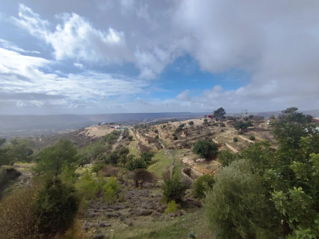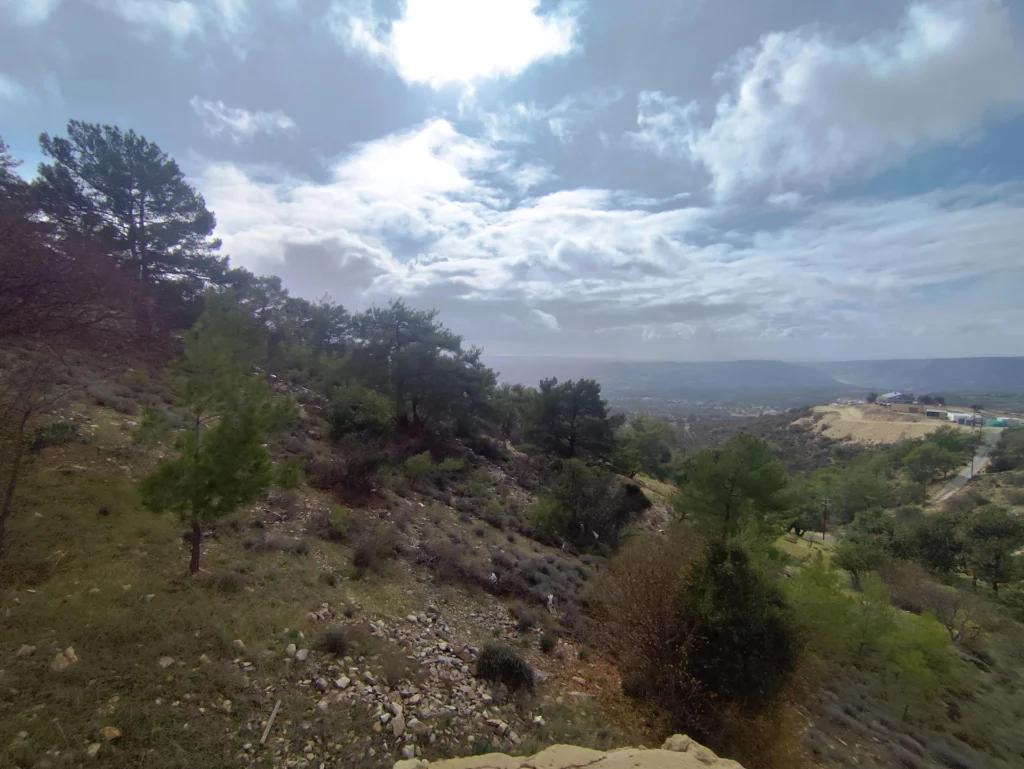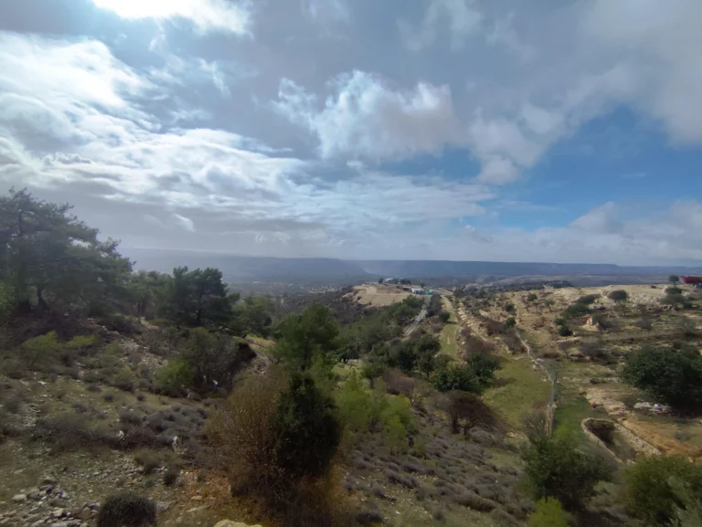 With the new government initiative will be increased 20% The land is on a peak above sea level 750 meters. With a breath taking view of the entire Limassol Bay and Troodos mountain range, located above the Korfi and Apesia villages six minutes from the Heritage School and 20 minutes from centre of Limassol. The weather is cool in the summer and mild in the winter and there is no humidity. It’s far from noise and pollution and it’s surrounding of pine and pistachio olive and carob trees offers a calming sensation and some magic sunrises. Its natural beauty, green environment and tranquility make it an ideal choice for investment development, development or creation of high-standard private property. The plot has direct access via road, as well as an internal road network that allows easy and comfortable movement in the land. In addition, within the plot there are premises for storage, fence, offering practical solutions and flexibility of use.