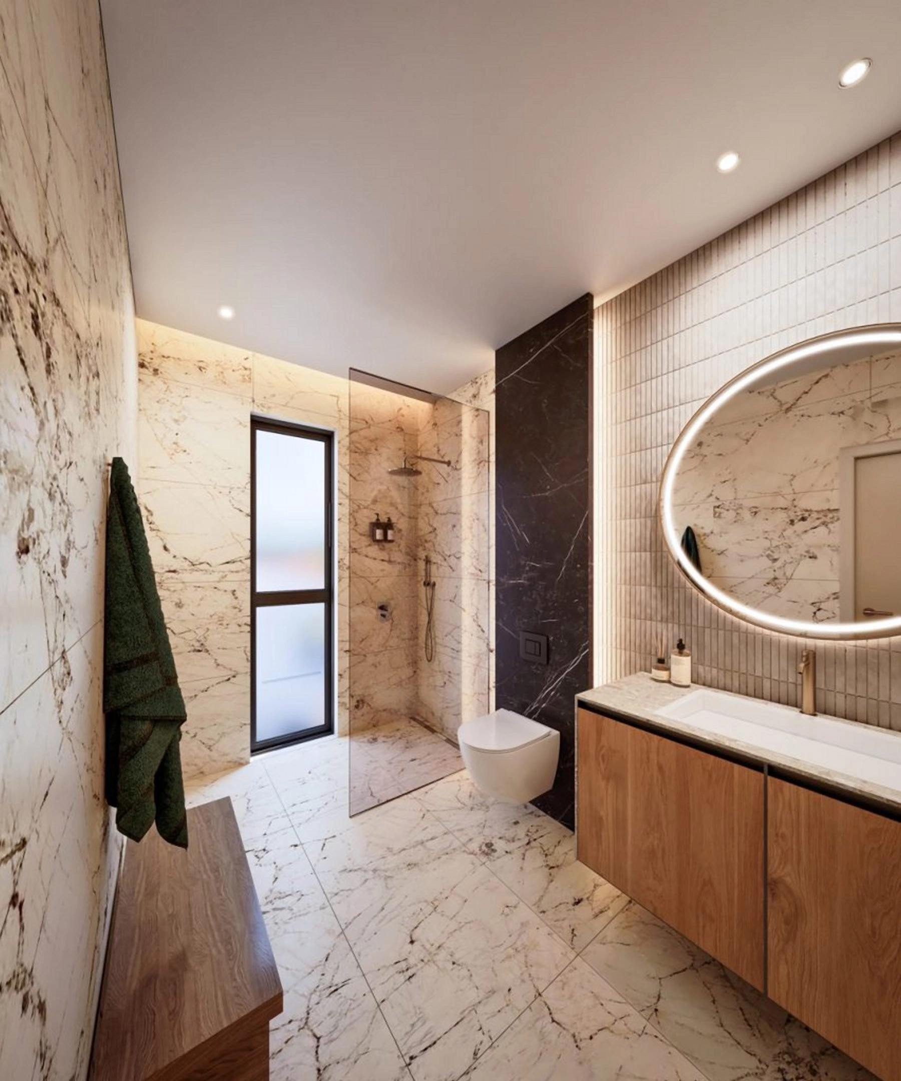 Architecture is clean and confident, combining contemporary lines with warm natural textures and refined detailing. Outdoor areas are designed as true extensions of the living space, with private gardens, swimming pools and rooftop terraces offering moments of seclusion above the city.