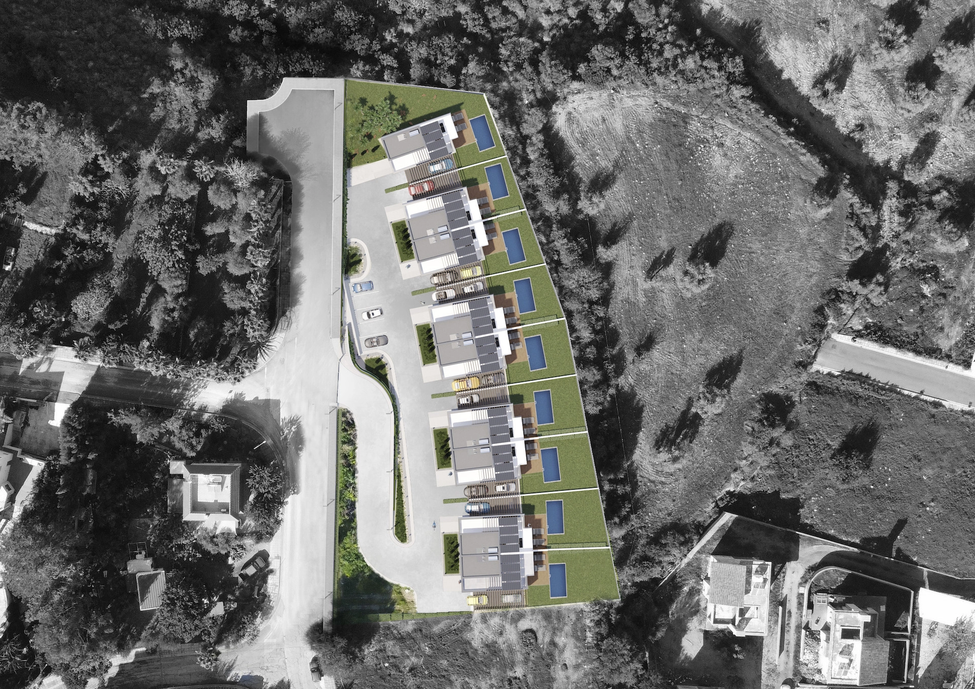 A: Yes, each residence includes two private parking spaces.