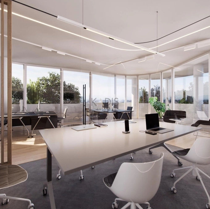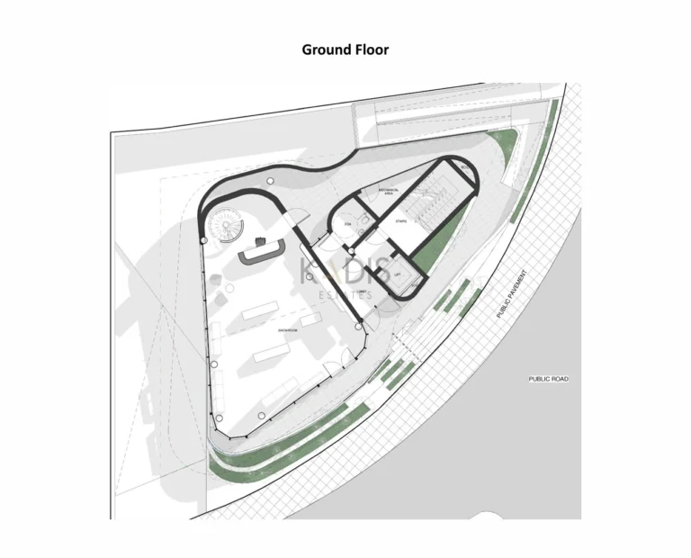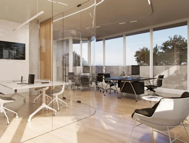 This modern commercial building consists of a mezzanine, 4 floors and a roof garden. The built-up area of the property, of which 115 sqm is the ground floor, 54 sqm is the mezzanine, the 2nd floor is 99 sqm, the 3rd floor is 86 sqm and 93 sqm is for the 4th floor. The curved architecture of the building creates a sense of space, openness and light. This feature is emphasized by attractive open verandas on each floor with views of the cityscape. The building is located at the entrance to Paphos, close to the highway in a busy area. The building is in close proximity to educational institutions such as colleges and schools, as well as banks, shops, cafes and restaurants, making it an ideal real estate investment with a high yield.