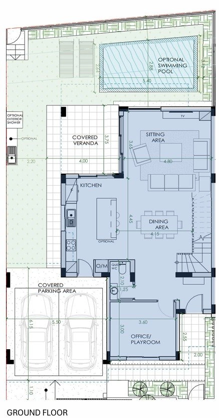 Every residence offers the option of a private swimming pool with outdoor shower, a landscaped garden, and a spacious veranda designed for outdoor living. High-quality finishes include granite worktops, fitted wardrobes, a solar water-heating system, and provisions for air conditioning throughout. Covered parking is also provided for each home.