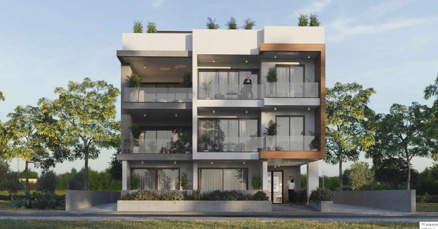 Apartment for sale in a new residential complex in the area of Oroklini, Larnaca.On the ground floor there are: one apartment, including a living room, a dining room, an open kitchen, one bedroom, a bathroom, a guest toilet, two balconies and a small terrace; seven storerooms; covered parking for seven cars, one for each apartment. Parking has entrance and exit paths.The second floor consists of the main entrance and three apartments. Each apartment has a living room, a dining room, an open kitchen, a guest toilet, two bedrooms and a bathroom.The third floor repeats the 2nd floor, and also has direct access to the roof via a spiral staircase.There is an entrance on the roof, three roof gardens allocated to the apartments below, and a technical area that houses seven pressure boosting pumps, seven water tanks, and solar panels that convert thermal energy into heat for water heaters.Monocrystalline photovoltaic panels installed on the roof of the stairwell and elevator cabin convert thermal energy into electrical energy, which powers the elevator and illuminates the public areas of the building.