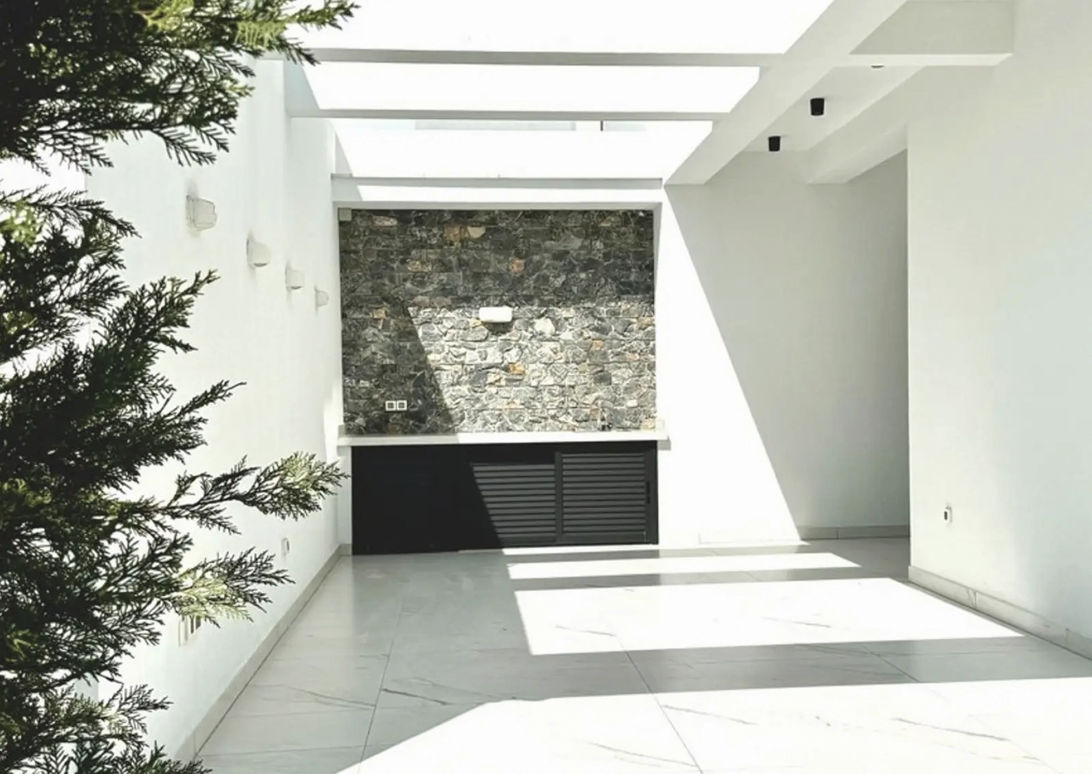 Designed for comfort and autonomy, the home includes underfloor heating, Daikin VRV A/C, a 10 kW photovoltaic system, Miele and Bosch appliances, designer furniture, an alarm system with CCTV, and electric gated parking.