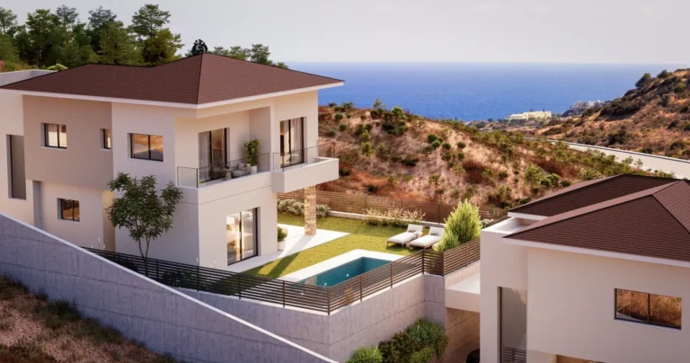 Luxury 4-bedroom villa located on the peaceful hills of Strogilos, Germasogeia, offering stunning sea, city and mountain views. Built in 2022, the property is part of an exclusive gated complex of 12 villas and combines modern design with high energy efficiency.