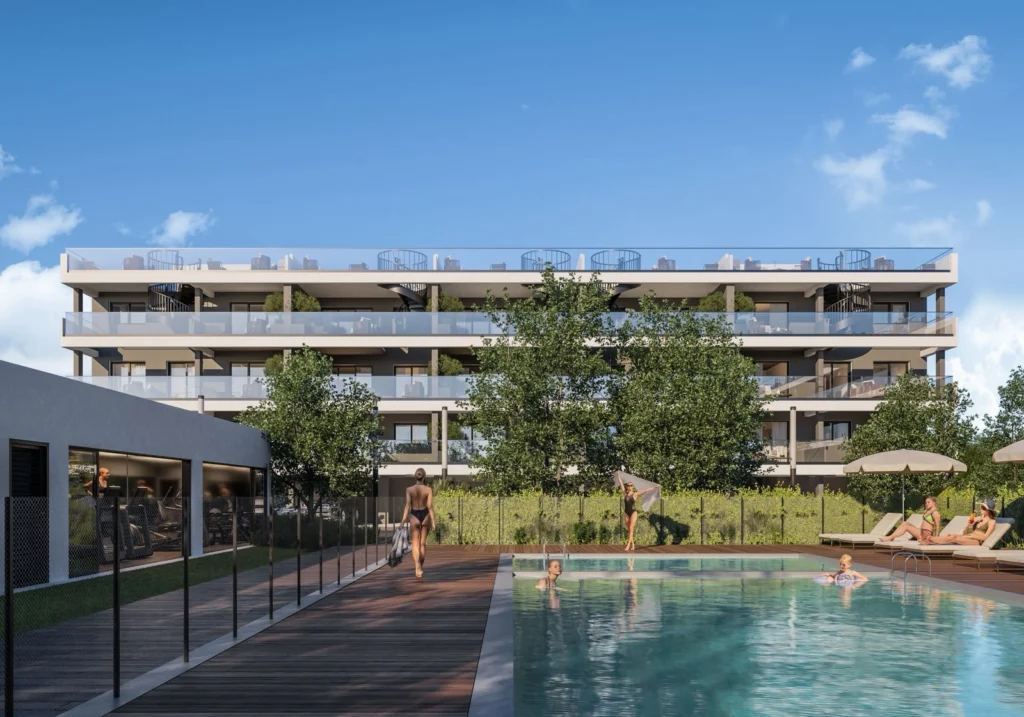 Apartment for sale with private garden in Moni area, Limassol. Here, away from the noise of the city, among promising infrastructure and schools under construction, there is a complex of 84 apartments combined into three blocks. The complex has large and children’s pools, a sauna, a modern gym and BBQ areas.A special advantage is the concept of accessibility: the complex offers apartments at prices significantly lower than in the center of Limassol. One- and two-bedroom apartments are available, with the possibility of combining to create an ideal space. Air conditioners are installed, energy efficiency class A.The complex has a large territory and is advantageously distinguished by its location – a prestigious project is actively developing on the first line, which will soon make this area even more attractive and in demand. A golf resort, the best medical centers and international schools are located nearby. The property is only a 35-minute drive from Larnaca and a 45-minute drive from Nicosia.