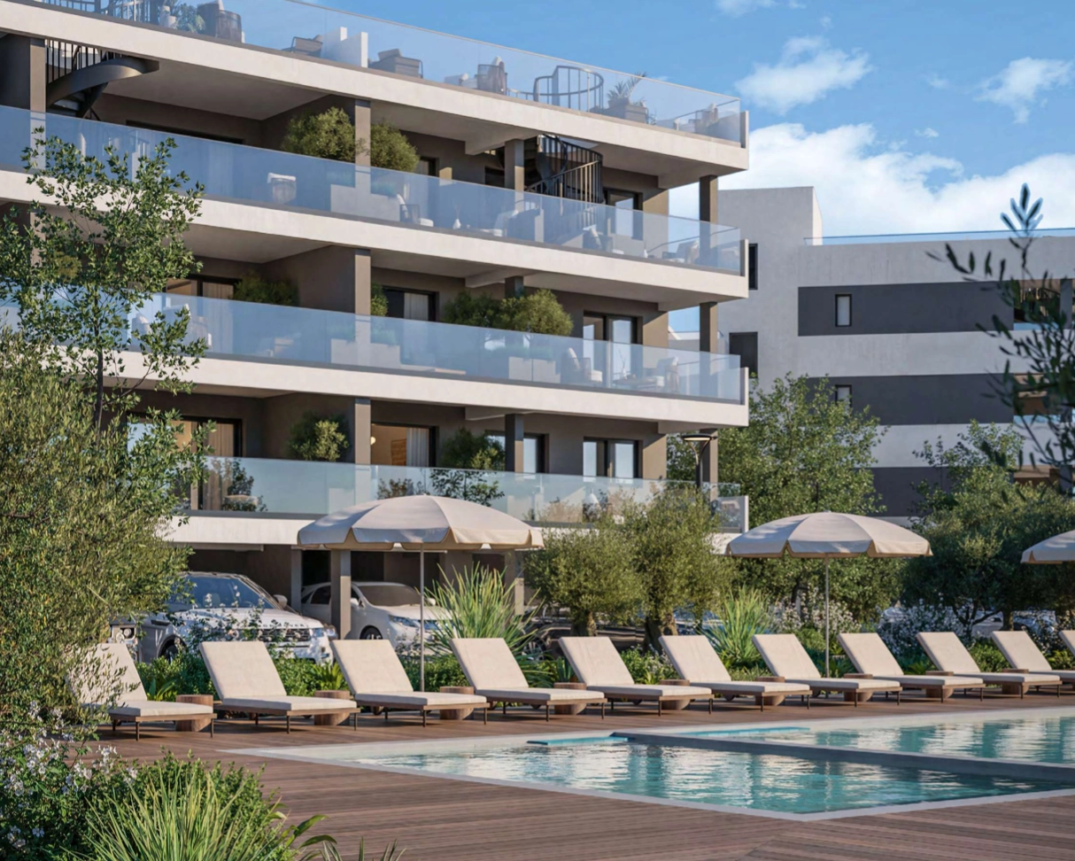 Penthouse for sale in Moni area, Limassol. Here, away from the noise of the city, among promising infrastructure and schools under construction, there is a complex of 84 apartments combined into three blocks. The complex has large and children’s pools, a sauna, a modern gym and BBQ areas.A special advantage is the concept of accessibility: the complex offers apartments at prices significantly lower than in the center of Limassol. One- and two-bedroom apartments are available, with the possibility of combining to create an ideal space. Air conditioners are installed, energy efficiency class A.The complex has a large territory and is advantageously distinguished by its location – a prestigious project is actively developing on the first line, which will soon make this area even more attractive and in demand. A golf resort, the best medical centers and international schools are located nearby. The property is only a 35-minute drive from Larnaca and a 45-minute drive from Nicosia.