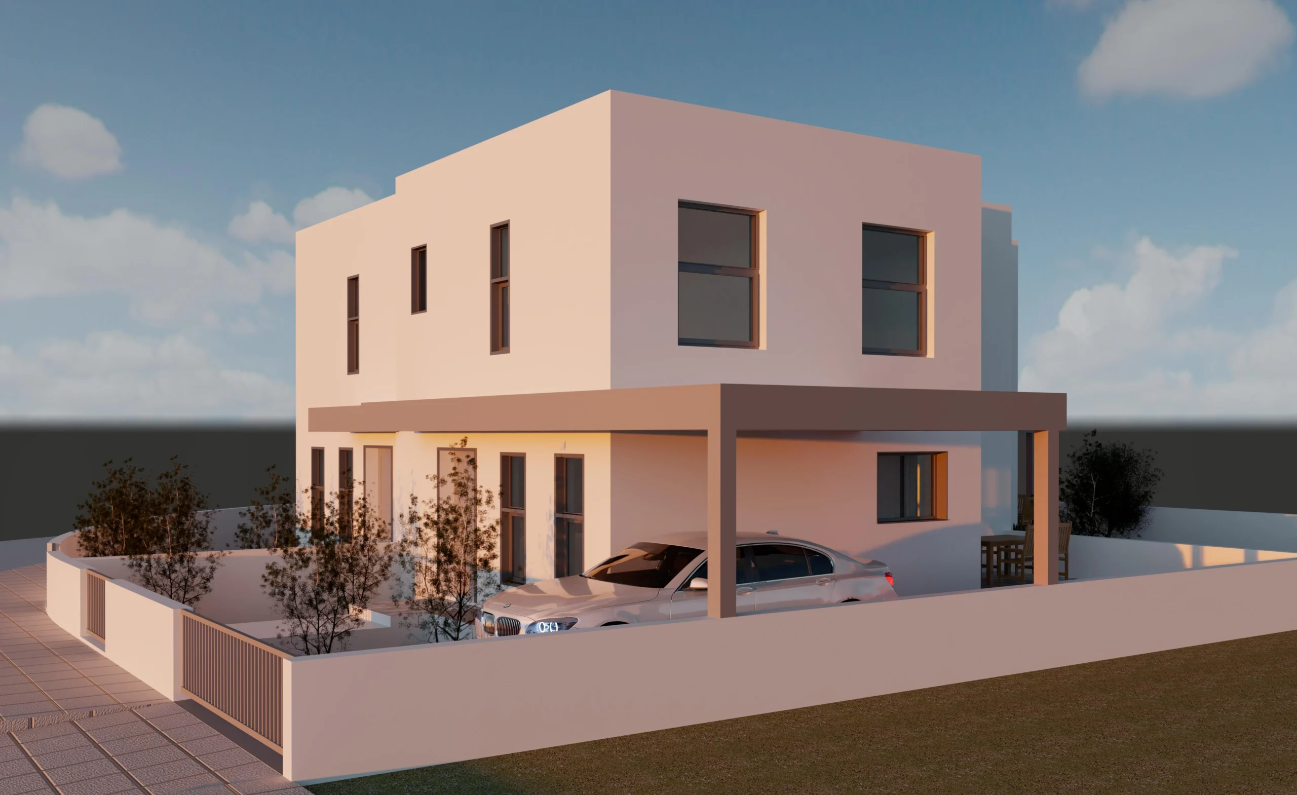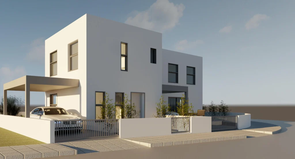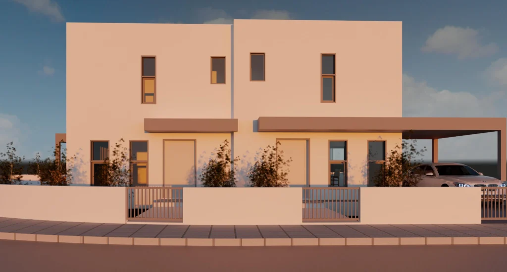 A house for sale in a residential complex located in Deftera, Nicosia. The project consists of three residences. The house includes an open-plan kitchen and living room, a guest toilet, 3 bedrooms, a bathroom and spacious interior and exterior spaces. Private parking is provided for the car.The house is built in accordance with high standards and has a Class A energy efficiency certificate. A photovoltaic system with a capacity of 3 kW/h is installed, which guarantees a high level of energy efficiency.