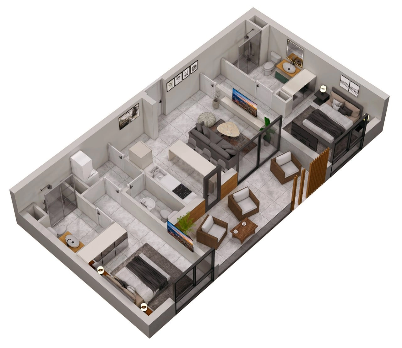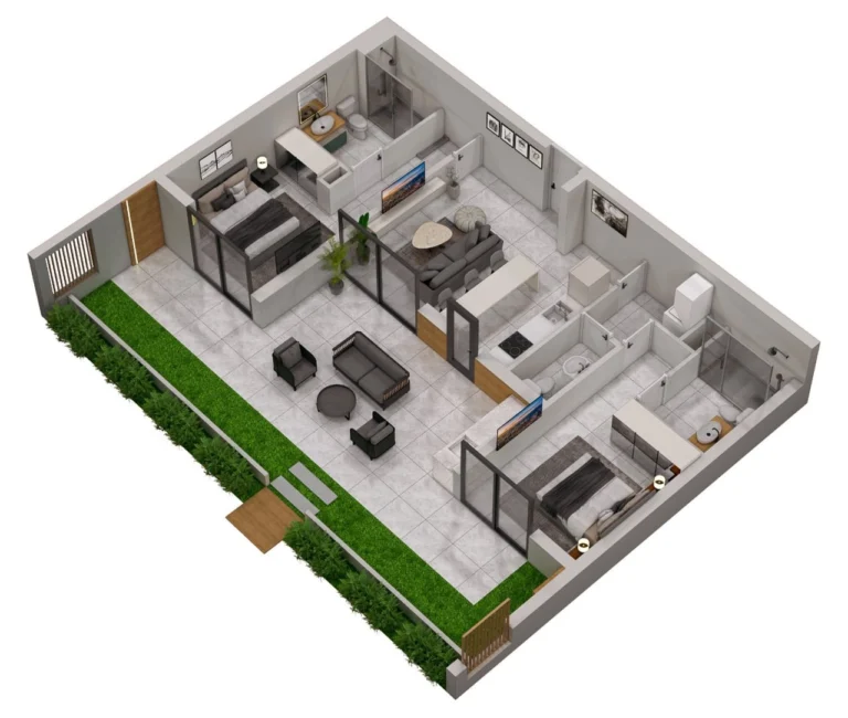 Studio for sale in the area of Pyla, Larnaca in a gated complex. There are four main types of apartments in the project: 2-bedroom apartments with a garden located on the canal, and above them studio apartments, 2-bedroom apartments and single apartments with spacious balconies. The advantages of the complex are: a long and unique canal pool, communal relaxation areas by the pool, luxury apartments with a garden, 2 gyms, storage rooms, bicycle storage.The complex is located just a 3-minute drive to the best beaches of Larnaca, with easy access to the island’s motorway network, and just a 20-minute drive from Larnaca city center and Larnaca International Airport. The one-of-a-kind canal pool and all the amenities make the complex the best choice for both permanent residence and recreation. The property can be used as holiday homes or purchased for investments with very high expected rental income.