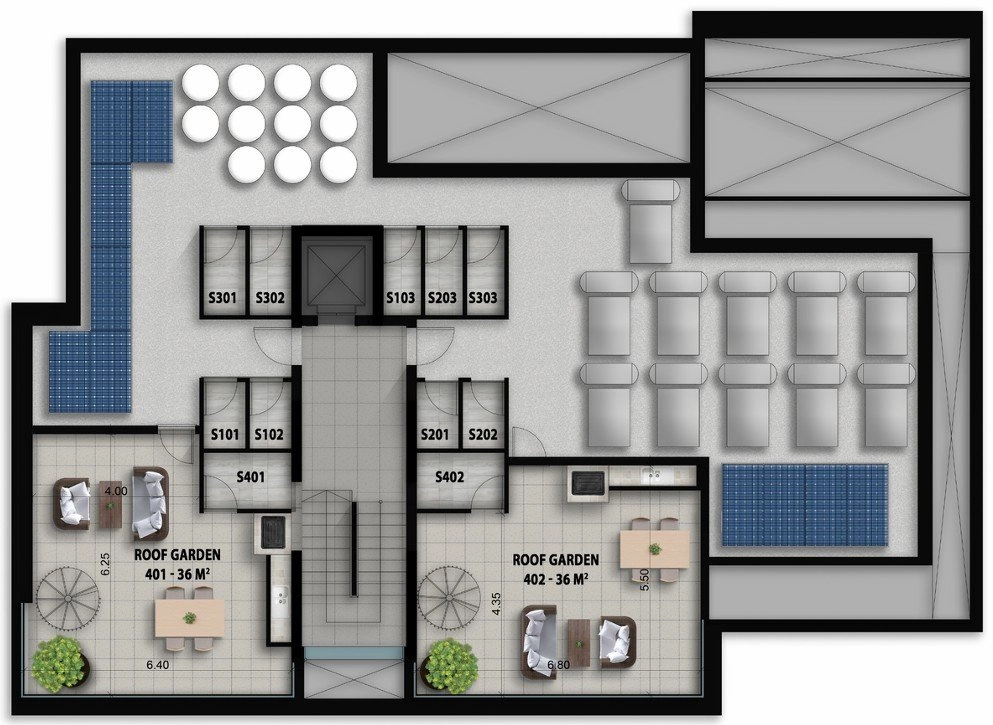 The four-storey development features a selection of stylish 1-, 2- and 3-bedroom apartments, all designed with intelligent layouts that maximize space, light, and comfort. Each residence is finished with high-quality materials and elegant detailing, delivering a modern living environment that is both practical and visually appealing.