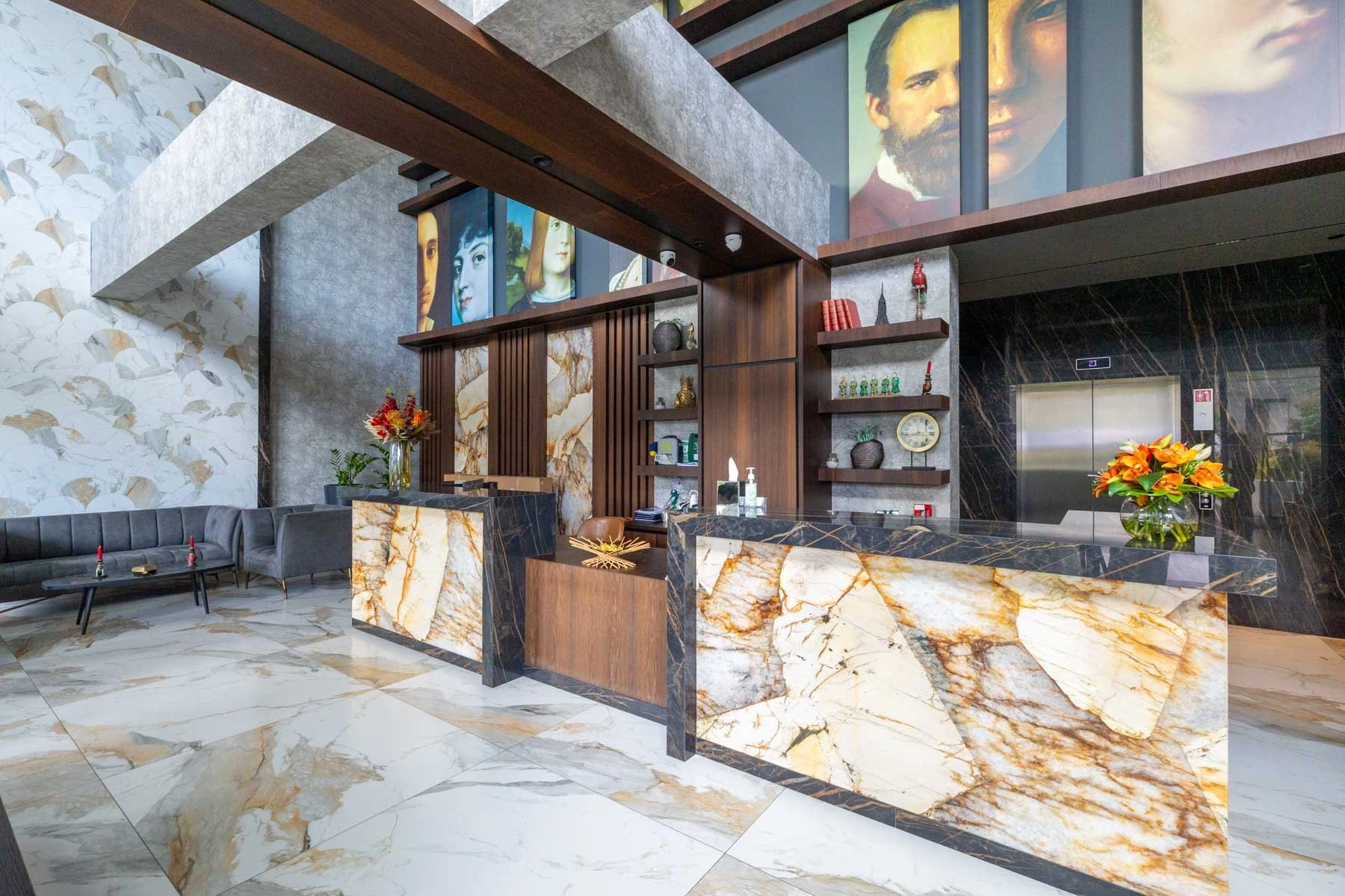 The luxury three bedroom apartment is part of a premier residential development providing the advantages of a central location, security, services, and inspiring architecture. The elegantly furnished residence with underfloor heating and VRV air-conditioning offers spacious light-filled living areas, and an extensive south-facing covered veranda . The tower is set just from the seafront road and a short walk from sandy beaches, classy coffee shops, and fine restaurants. It’s also close to designer shops and boutiques, banks, five star hotels and within easy reach of schools and first-rate medical facilities. The project combines the excitement of high living with excellent residents facilities – gated entrance and security pavilion, conference room, private use office, management office, concierge services, basement and visitors parking lots, luxurious high entrance lobby, large residents’ swimming pool, sun deck areas, luxurious wellness & fitness hall, landscaped gardens, store rooms for each apartment.
