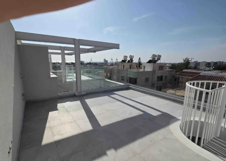 For sale is a modern, brand-new two-bedroom penthouse apartment located in the Agios Spyridon area of Limassol. The apartment is situated on the third floor of a contemporary three-storey residential building and features a spacious covered balcony as well as a private roof garden terrace, ideal for outdoor living and entertaining.