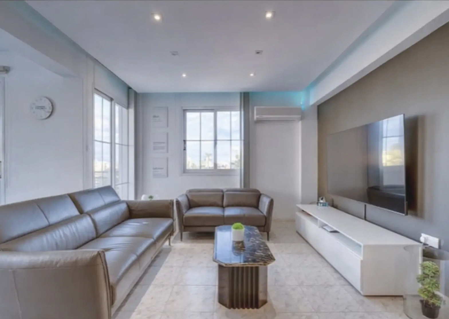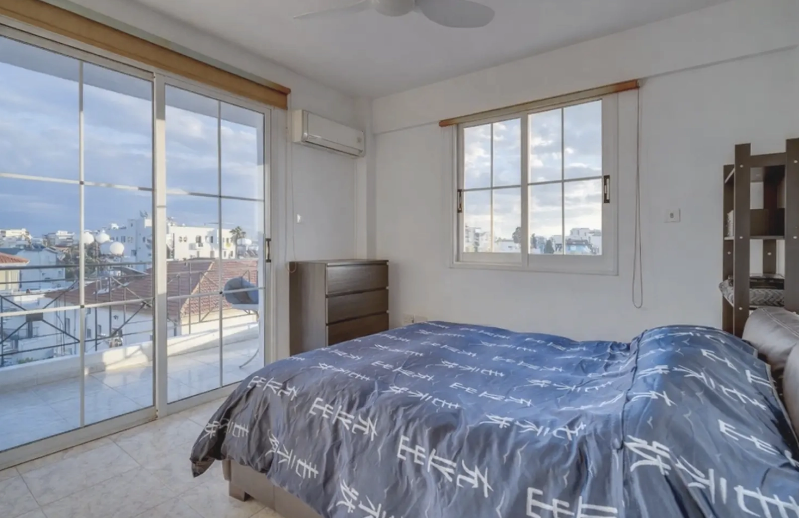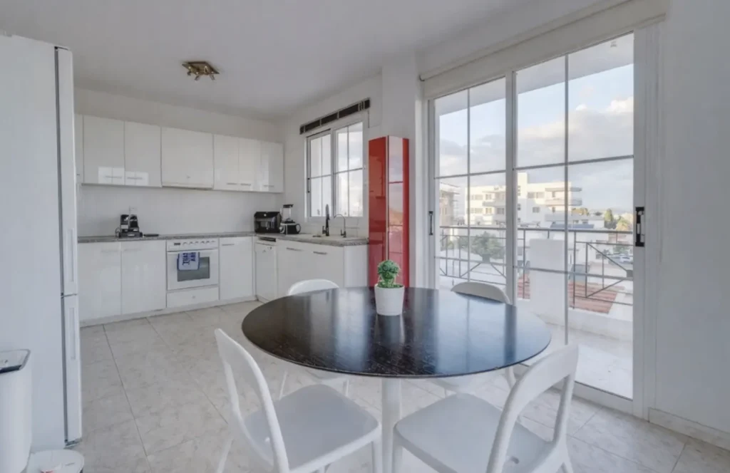 A spacious penthouse located in the city centre, just a short walk from Finikoudes Beach, offering excellent sea views and proximity to schools, shops, and all amenities. This well-maintained resale property features a large living room, a separate kitchen, and big verandas ideal for outdoor living. The master bedroom includes an en-suite bathroom, and there are a total of 3 bedrooms and 2 bathrooms. Additional features include covered parking, full air conditioning in all rooms, a storage room, and access by elevator. The penthouse is sold fully furnished and provides comfortable, city-living convenience with easy access to the beach and surrounding services.