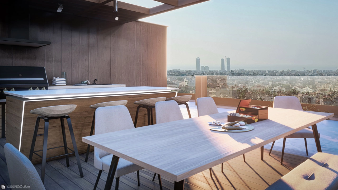 Sale of 2 bedrooms penthouse with roof garden under construction in Agyia Fyla, Limassol. The building is located in the fast-developing area and beautiful surroundings of Ayia Fyla, Limassol, in proximity to all city destinations.All concrete building frame, with raft foundation, columns, beams, and slabs. Walls from hollow clay bricks and three coats of plaster. Ceramic tiles in the living spaces, balconies, and bathrooms. Timber boards in the bedrooms. Quality kitchen units with islands featuring composite granite worktops and splash-backs. Solar heater, pressurized water supply system, provisions for air-conditioning units, and central heating system photovoltaic system connected to all 2-bed flats. One parking space and one storeroom allocated to each apartment. Gated entrances and audio-visual entry and access system to main entrances.