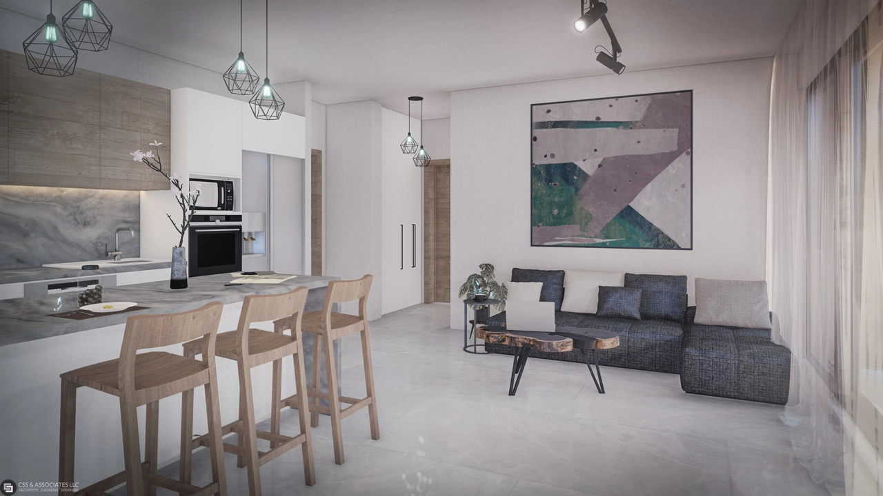 Sale of 1 bedroom apartment under construction in Agyia Fyla, Limassol. The building is located in the fast-developing area and beautiful surroundings of Ayia Fyla, Limassol, in proximity to all city destinations.All concrete building frame, with raft foundation, columns, beams, and slabs. Walls from hollow clay bricks and three coats of plaster. Ceramic tiles in the living spaces, balconies, and bathrooms. Timber boards in the bedrooms. Quality kitchen units with islands featuring composite granite worktops and splash-backs. Solar heater, pressurized water supply system, provisions for air-conditioning units. One parking space and one storeroom allocated to each apartment. Gated entrances and audio-visual entry and access system to main entrances.