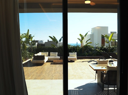 New four-storey villa for sale in Agios Athanasios, Limassol, with panoramic sea views, 2000 meters from the coast. The covered area is 590 m2, with additional verandas and a 104 m2 roof garden with a barbecue area. The villa has six bedrooms, including a master bedroom with a dressing room and a bathroom, as well as a staff room with a separate entrance. The plot is fenced, there is a covered parking for three cars, indoor and outdoor saltwater pools, a Jacuzzi for ten people and a sauna. It is equipped with an elevator, a home cinema, a gym, a children’s room, a server room, a laundry room and a Crestron smart home system. Underfloor heating, VRV air conditioning, solar panels, water softener system and video surveillance are installed. The price is not subject to VAT.