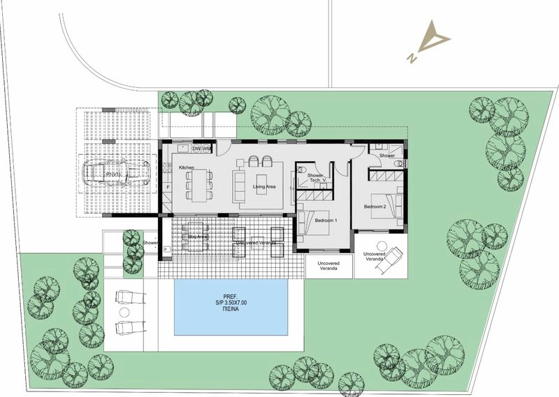Two Bedroom Detached Bungalow For Sale In Kouklia, Paphos – Title Deeds (New Build Process) Only 1 x 2 bed Bungalow V1 available These luxury properties consist of three 2 and 3 bedroom Bungalows designed on a large plot. They enjoy there own private swimming pool surrounded by an outdoor barbecue area, spacious indoor and outdoor areas. Attention to detail has been given with excellent quality finishes. The villas enjoy amazing views of the Mediterranean, golf course and the beautiful surrounding landscapes. - Master bedroom with en-suite and fitted wardrobes - 1 Bedroom with fitted wardrobes - Open plan living /Kitchen/dining area - Family bathroom - Provisions for A/C - Parking - Private swimming pool - Internal area 86 m2 - Covered veranda 15 m2 - Plot size 673 m2 - Exceptional views of the Mediterranean Sea - 17 Minutes to Paphos International Airport - 28 Minutes to The Marina - Suitable for Cyprus Permanent Residency – Fast Track - Subject to VAT - Energy Efficiency A Kouklia Located 18 km east of Paphos and 49 km west from Limassol, the Secret Valley Golf Club and Residential Resort, is a highly prestigious environment located by the renowned area of ‘Petra tou Romiou’, the legendary birthplace of Aphrodite, the Goddess of love. The nearest village is Kouklia with restaurants, and local amenities close by. ———— * Title Deeds (New Build Process) * Private Swimming Pool * Golf Course Location * Suitable for Cyprus Permanent Residency – Fast Track * Subject To VAT * Off Plan – Completion TBC * Energy Efficiency A Kouklia Kouklia County: Paphos Sale Type: For Sale Ref #: ARI101N2