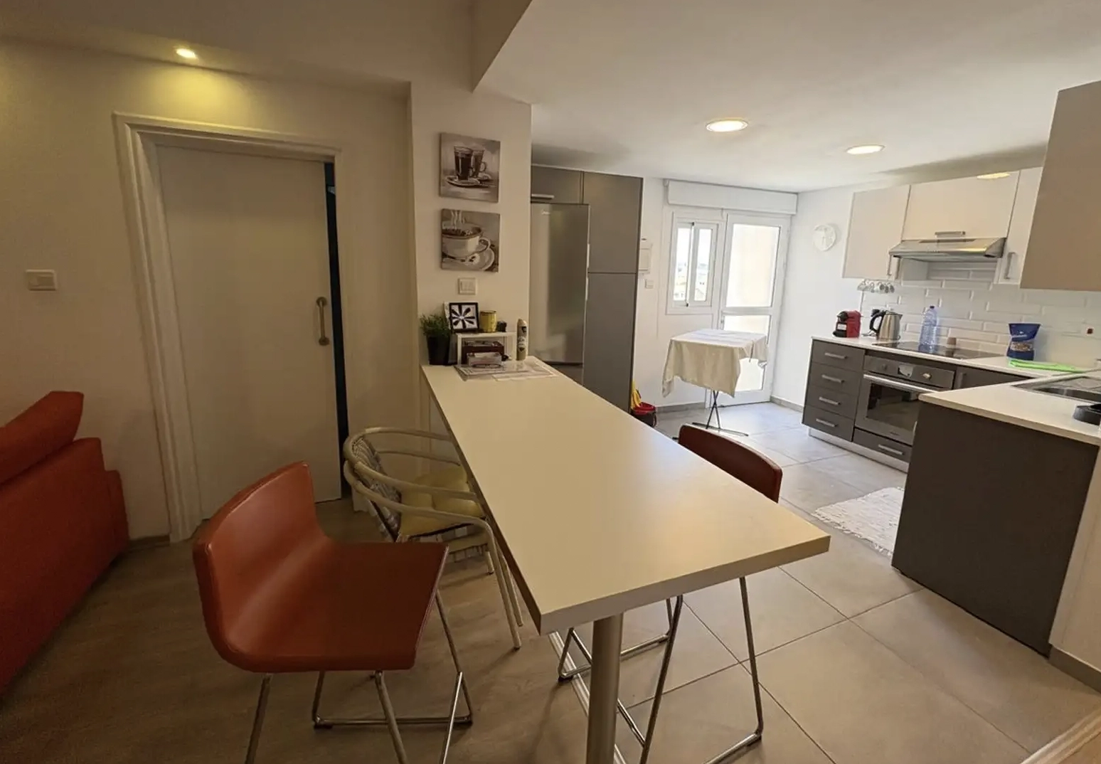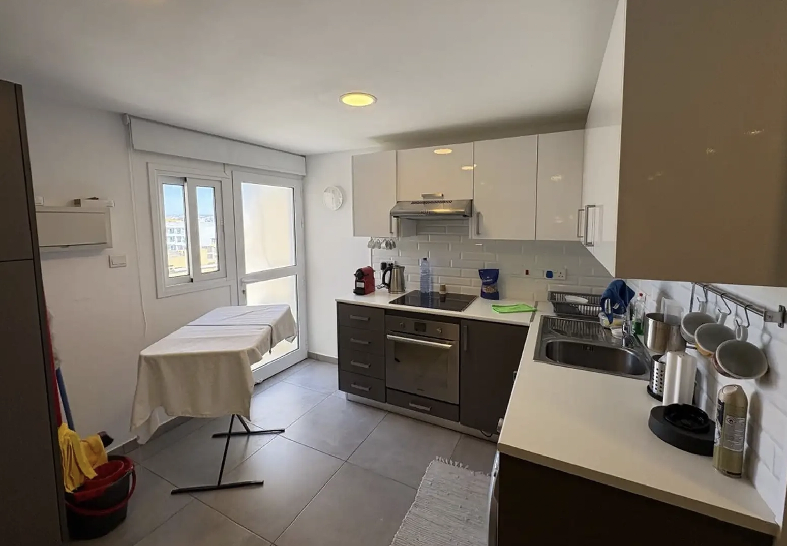 The property features two bedrooms with built-in wardrobes, one bathroom, and two balconies that allow plenty of natural light. It is fully furnished and includes a fully equipped kitchen with appliances. The apartment is fully air-conditioned in all rooms, ensuring comfort throughout the year.